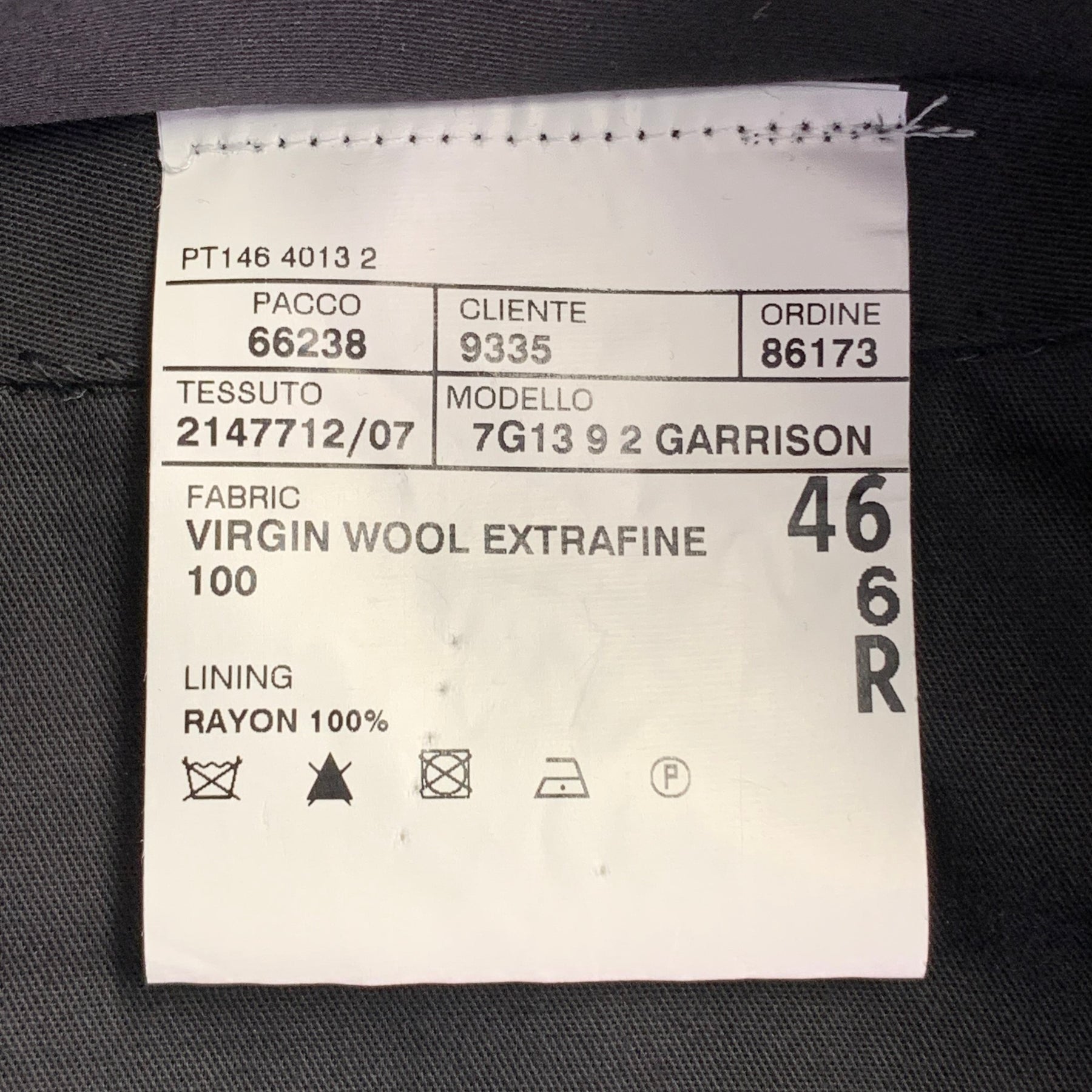 POLO by RALPH LAUREN dress pants in a charcoal grey virgin wool fabric featuring a woven design, flat front, tapered leg, and zip fly closure.