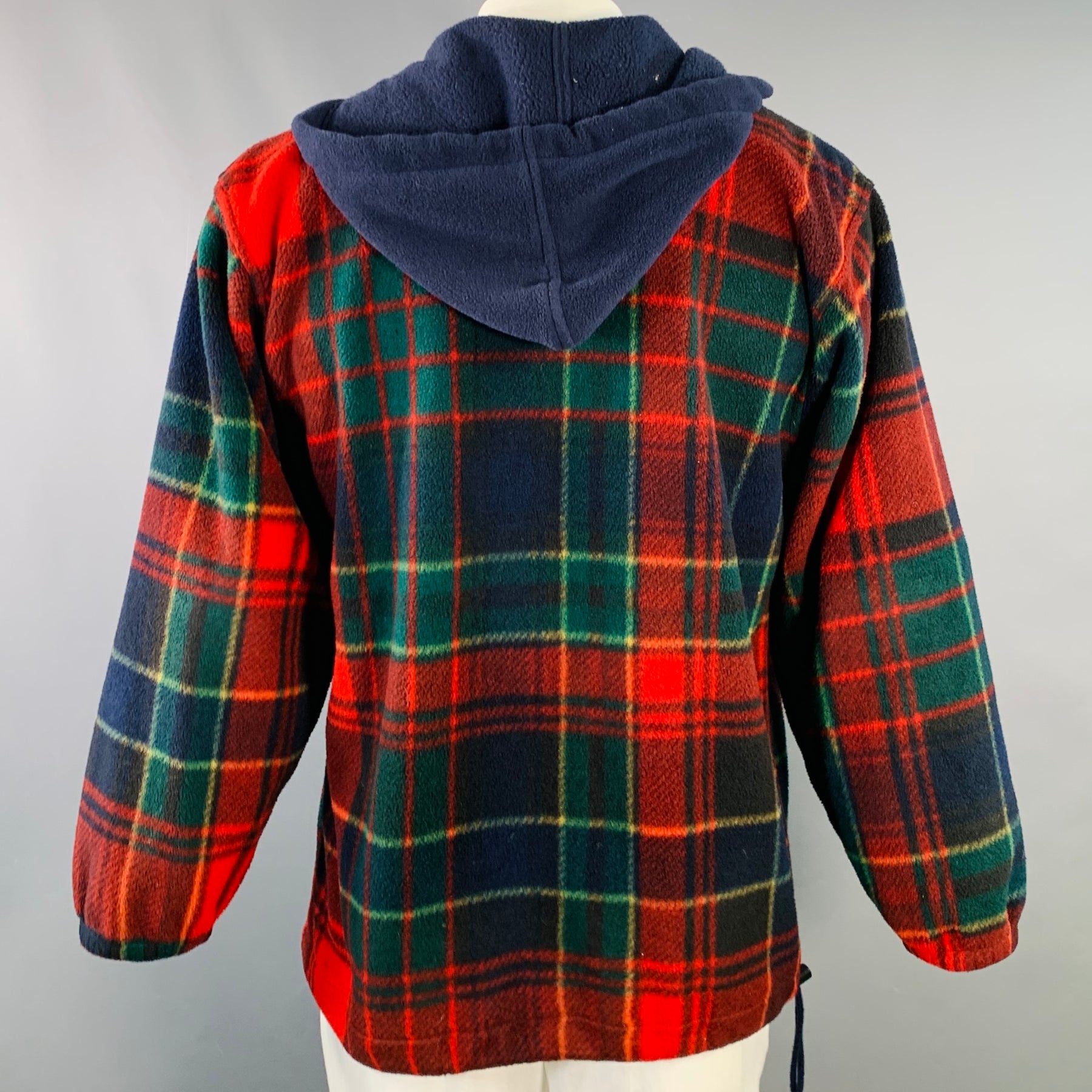 POLO by RALPH LAUREN Size XL Red Navy Green Plaid Polyester Hooded 1/4 Zip Sweatshirt