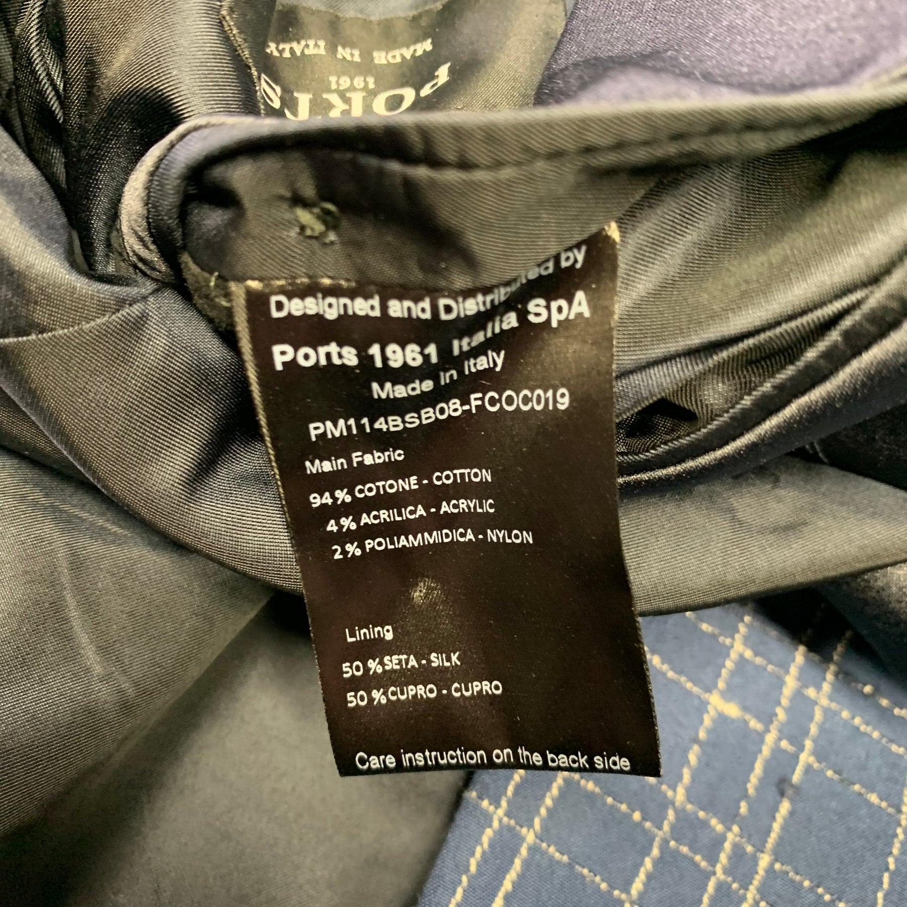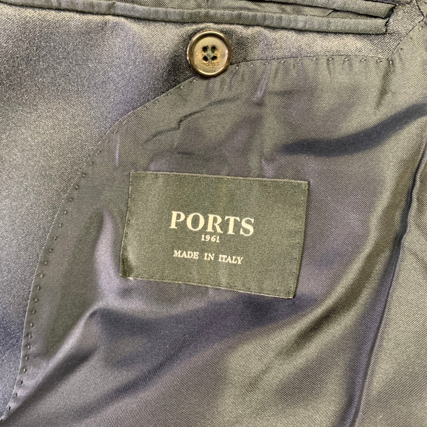 PORTS 1961 Chest Size 40 Navy White Window Pane Cotton Blend Sport Coat