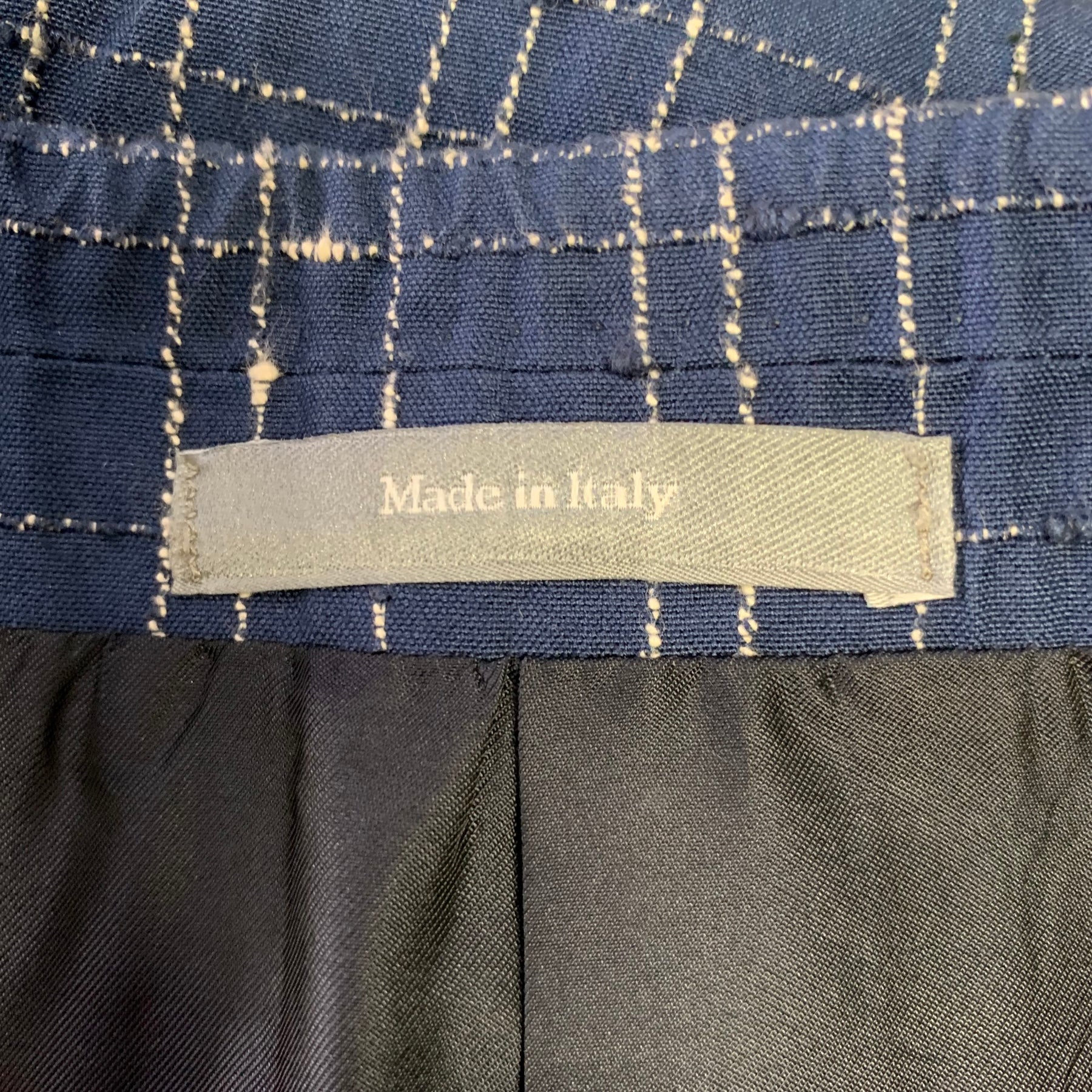 PORTS 1961 sport coat features a sophisticated navy and white windowpane pattern. Crafted in Italy from a premium cotton blend, this two-button tuxedo-style jacket offers a sharp peak lapel and a tailored fit, perfect for any wardrobe.