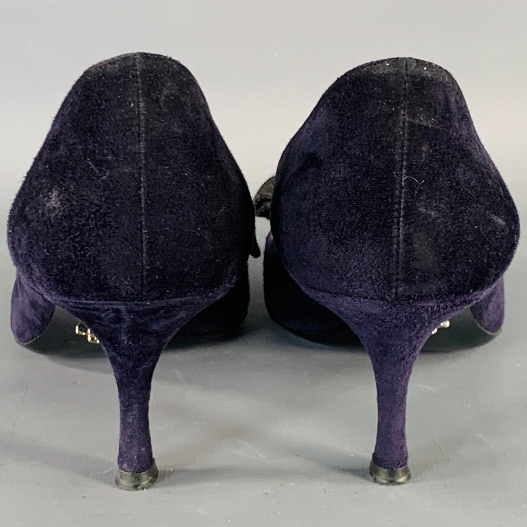 PRADA Size 11 Navy Suede Bow Pointed Toe Kitten Heel Pumps