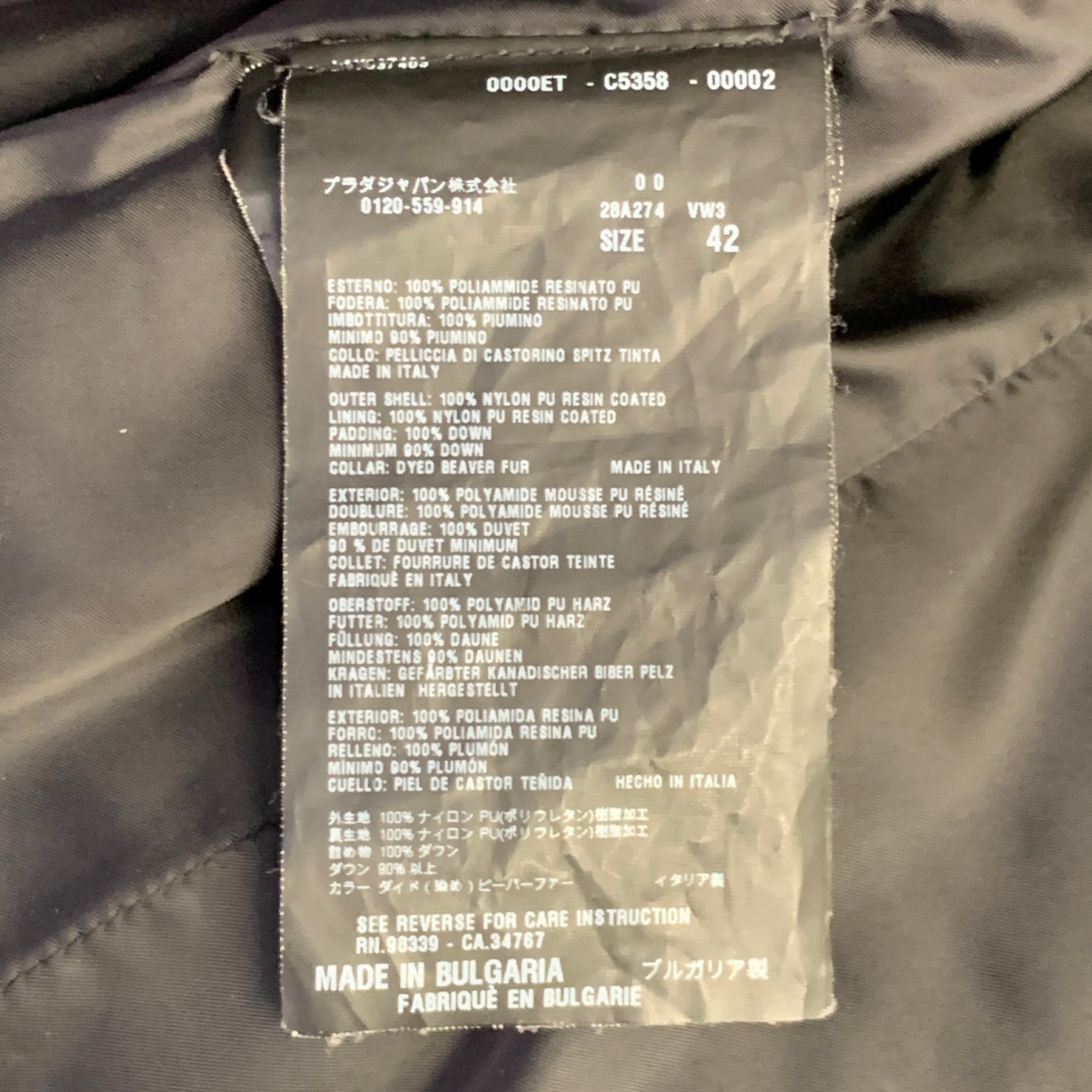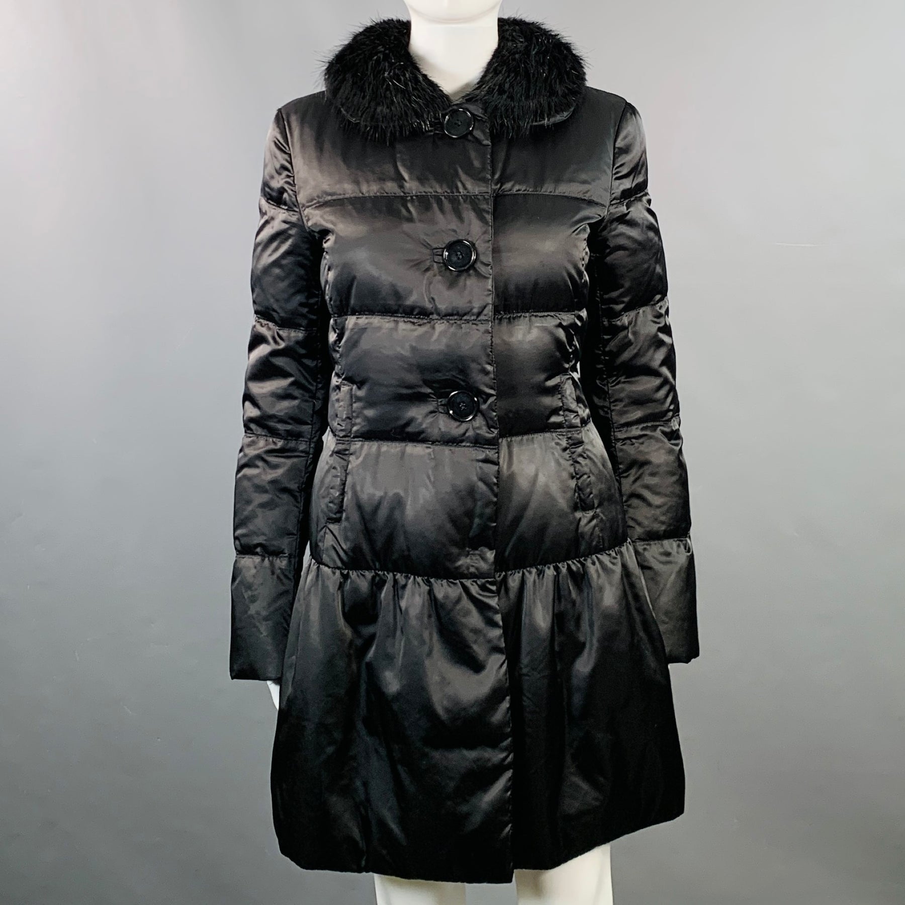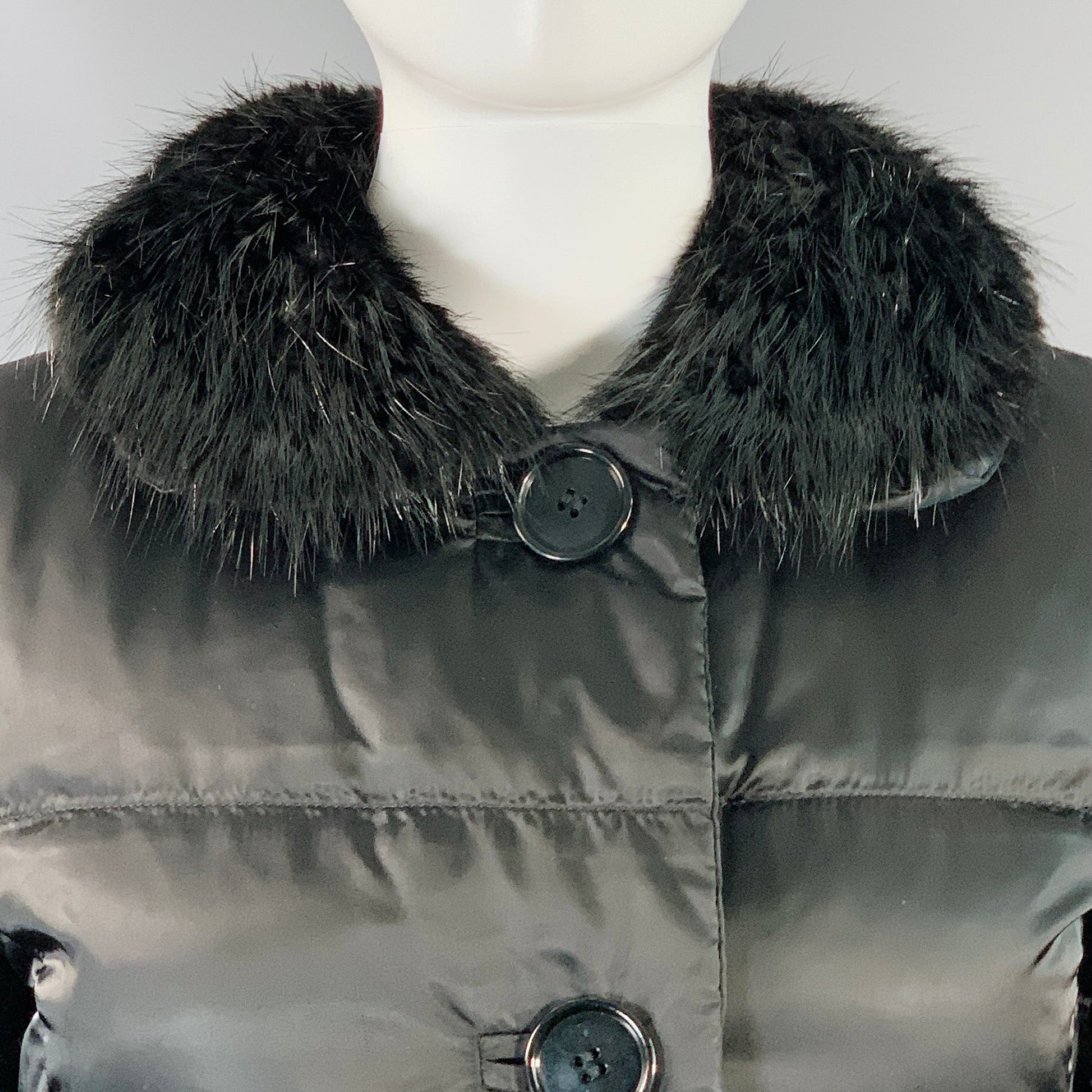 PRADA Size 6 Black Polyamide Quilted Fur Collar Button Down Coat
