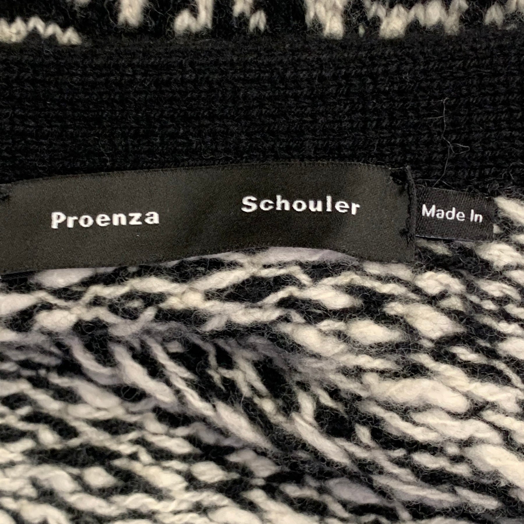 PROENZA SCHOULER Size L Black White Wool Geometric Knit V-Neck Tie Coat