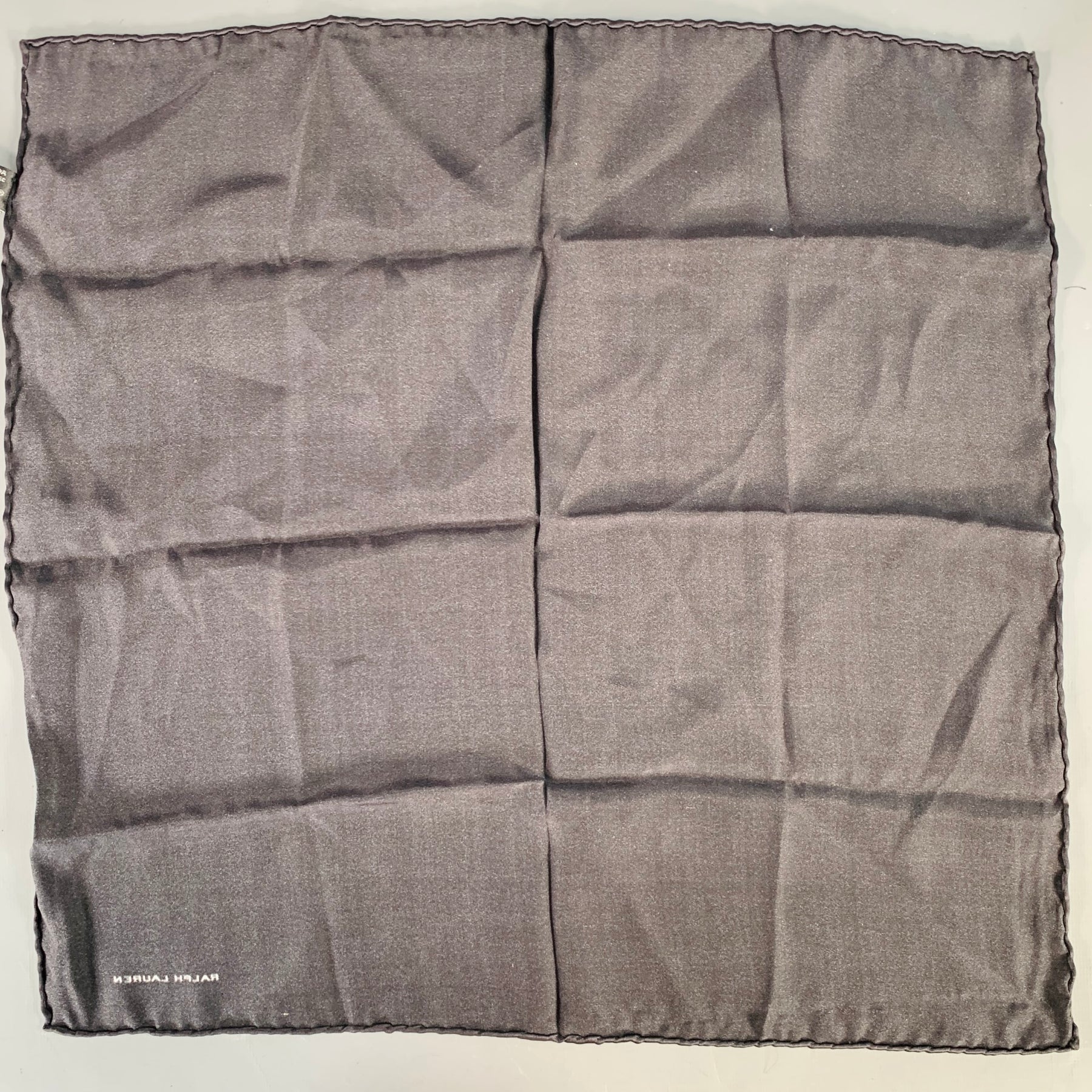 RALPH LAUREN pocket square in a black satin featuring hand rolled edges.