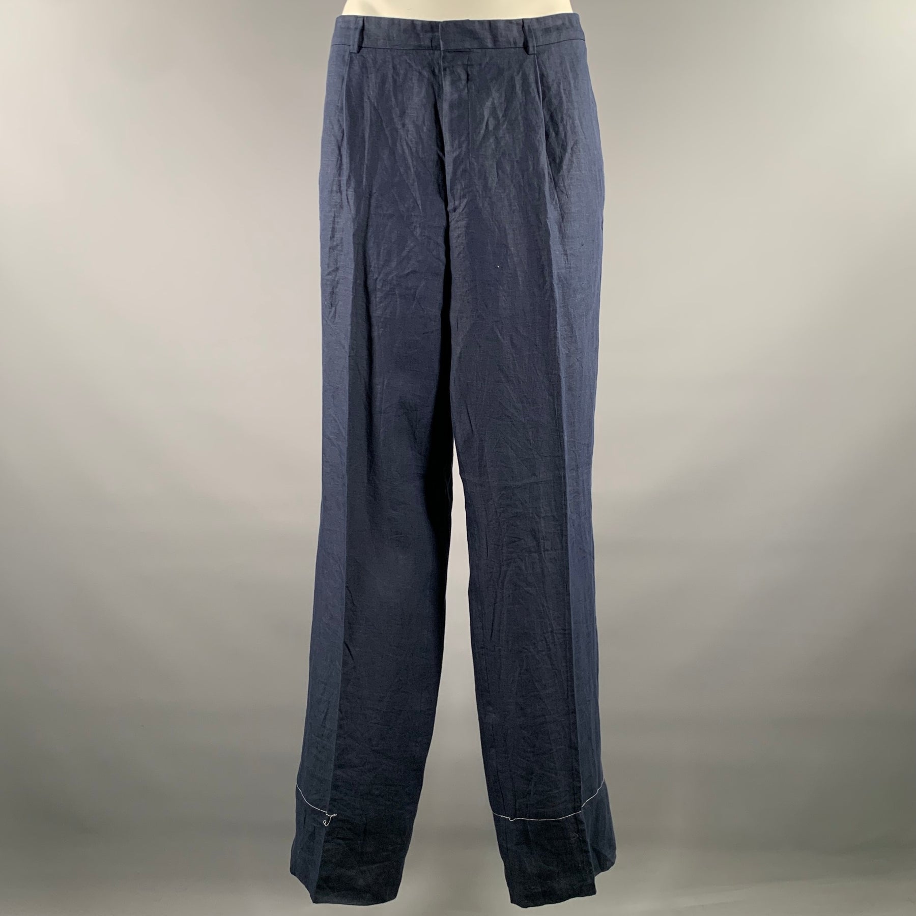 RALPH LAUREN Size 40 Navy Linen Wide Leg Casual Pants