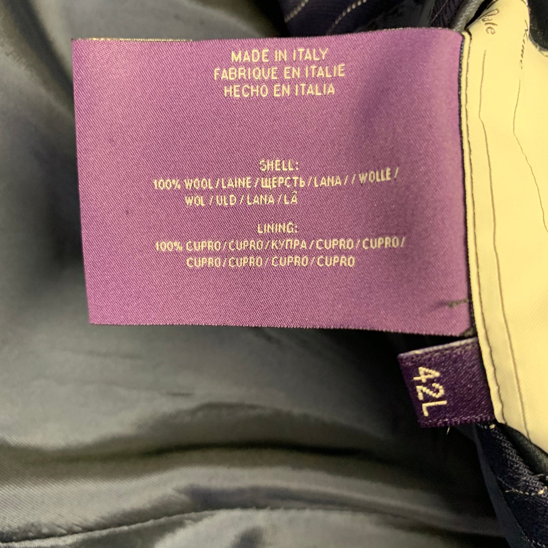 RALPH LAUREN Size 42 Long Navy White Pinstripe Wool Notch Lapel Suit