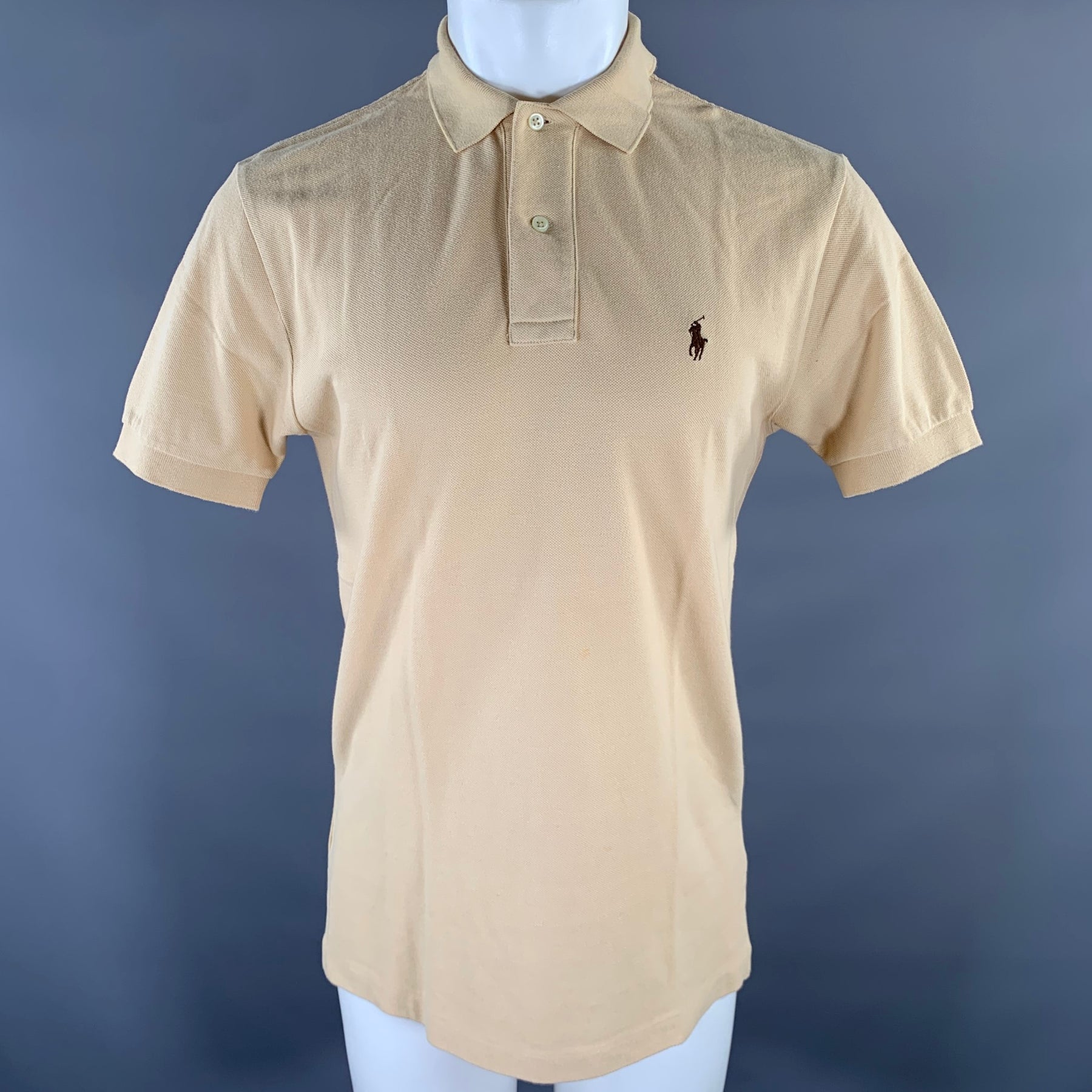 RALPH LAUREN Size S Khaki Yellow Logo Cotton Ribbed Polo