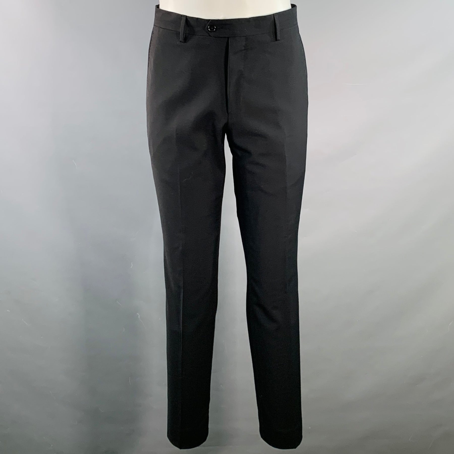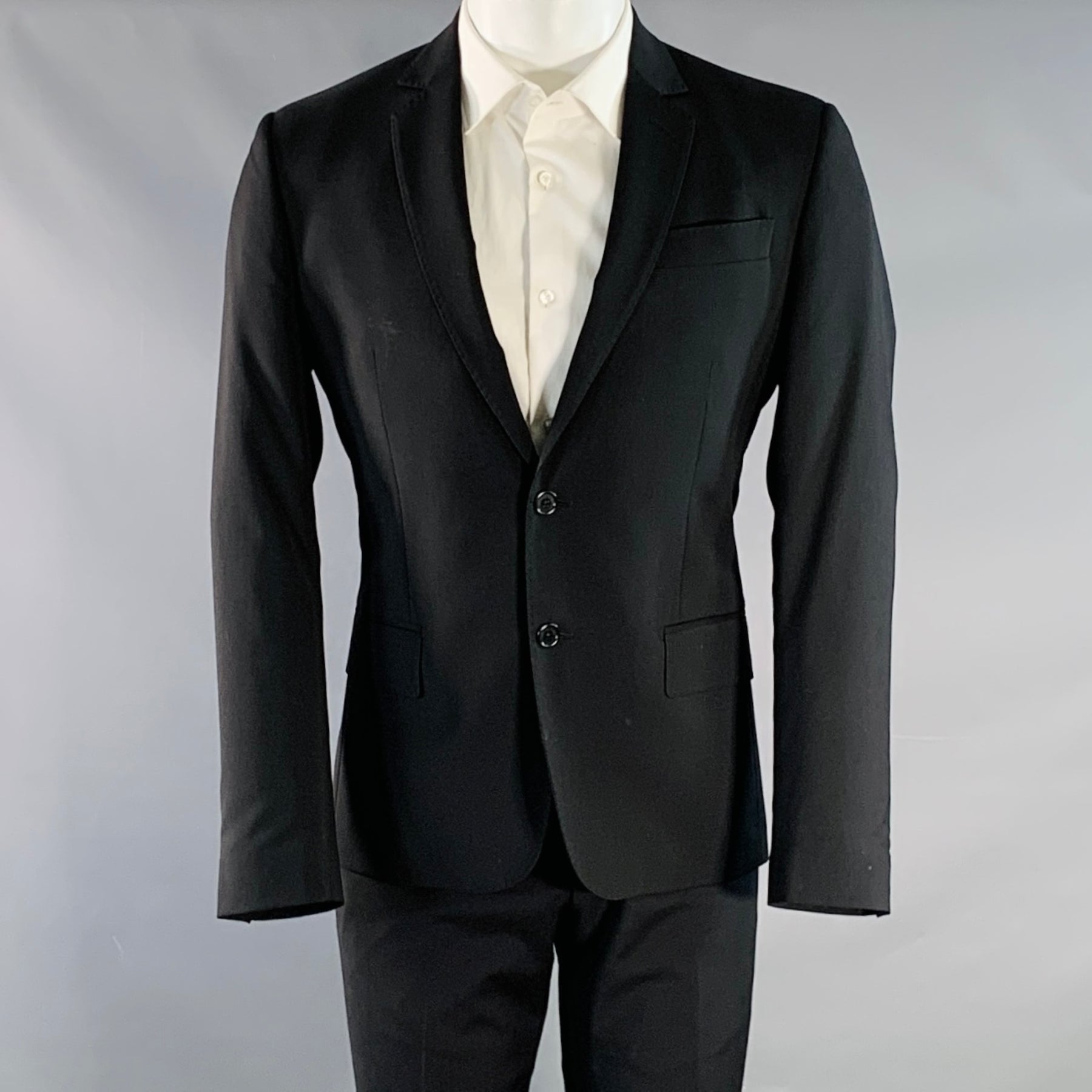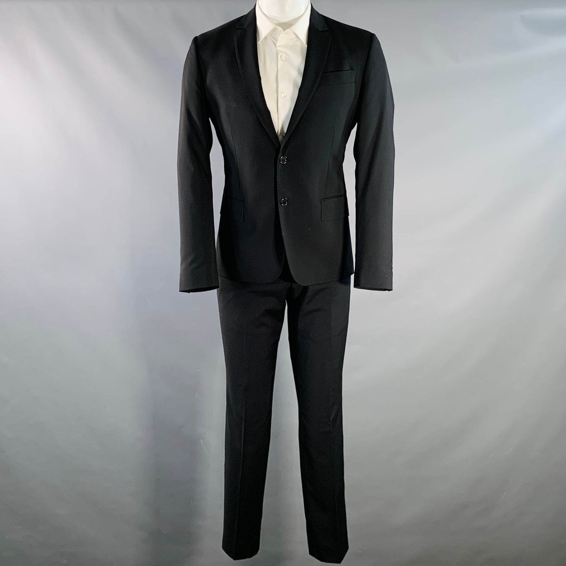 ROBERTO CAVALLI Size 38 Black Virgin Wool Notch Lapel Suit
