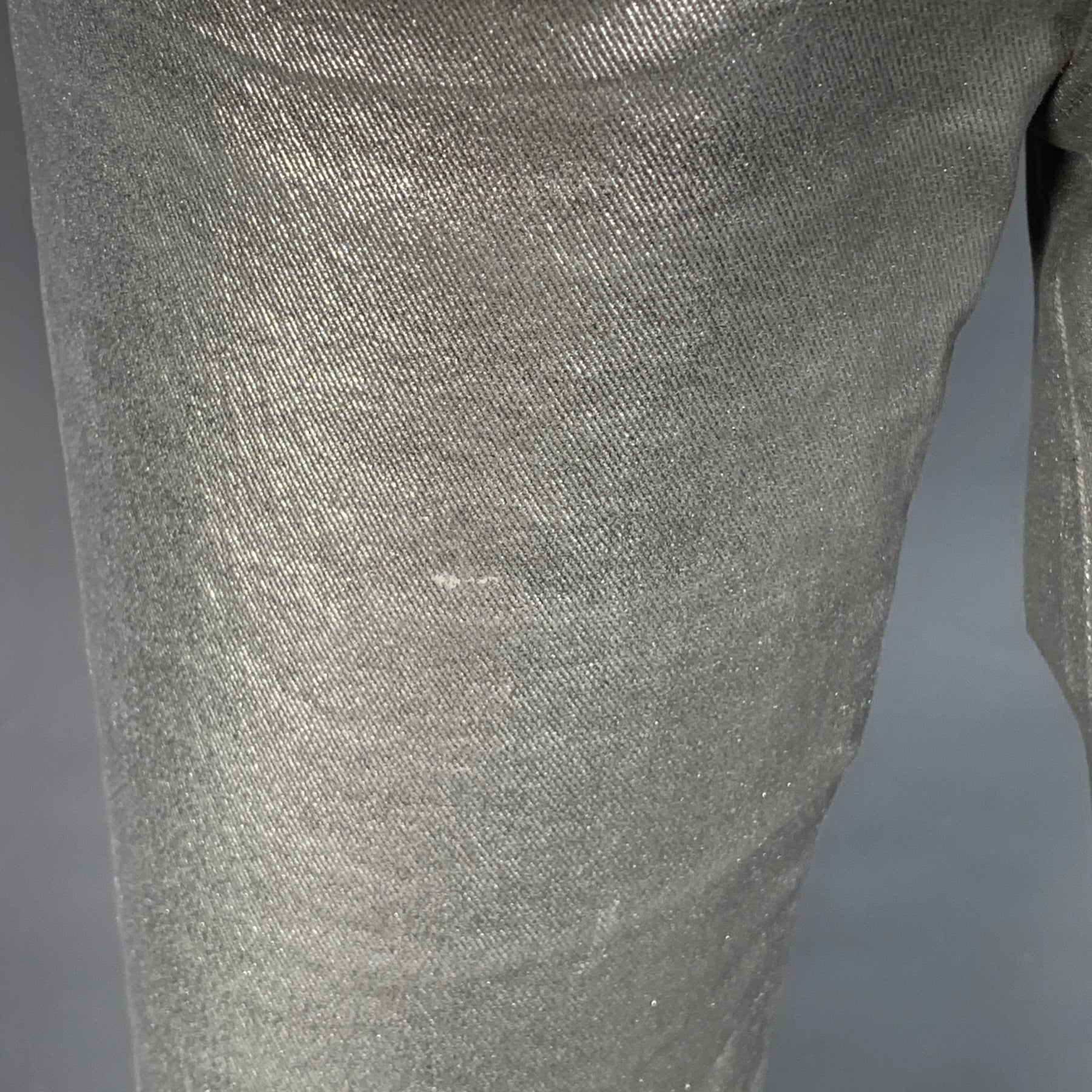 ROBERTO CAVALLI Size 4 Metallic Silver Coated Cotton Blend Skinny Jeans