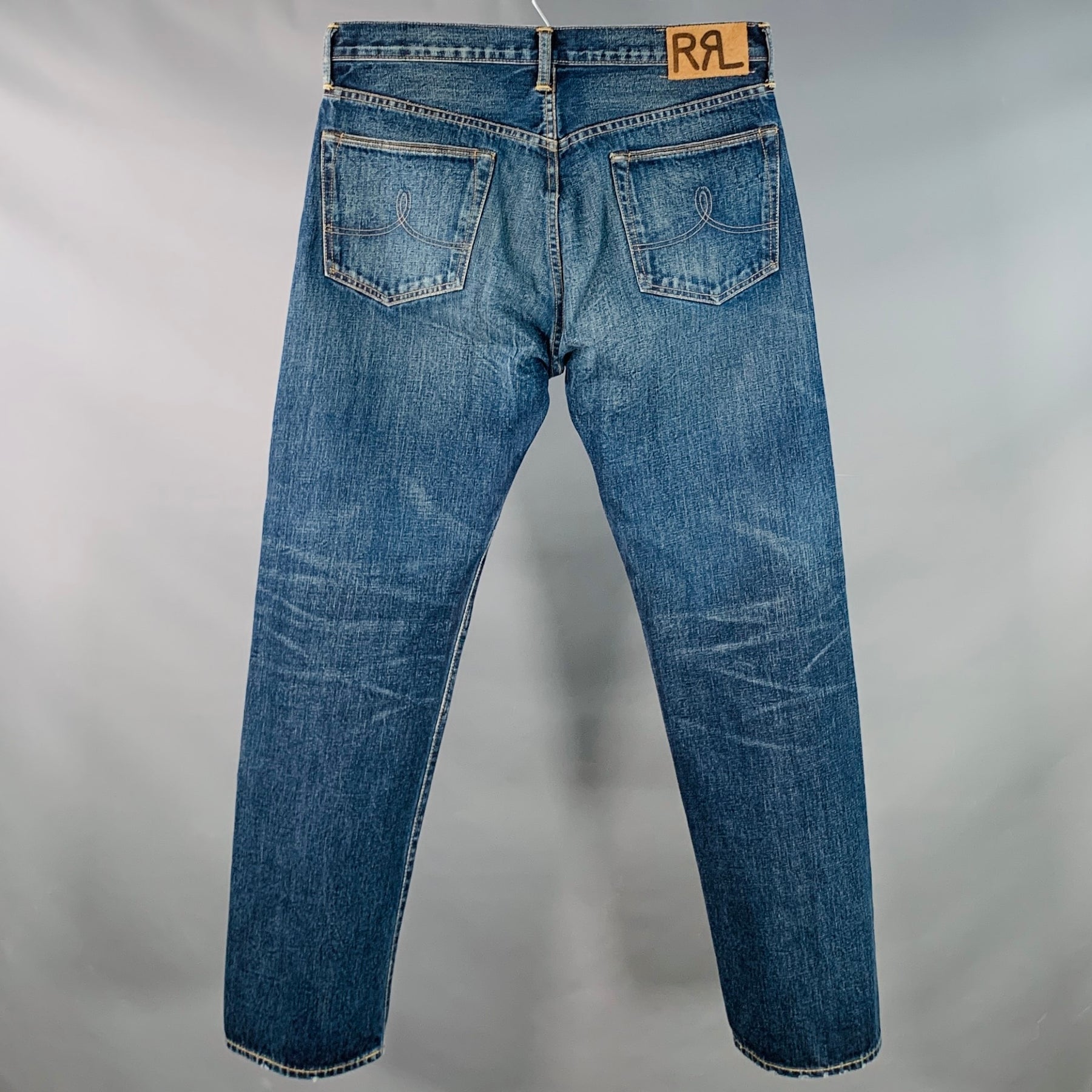 RRL by RALPH LAUREN Size 34 Blue Cotton Selvedge Denim Twill Straight Button Fly Jeans