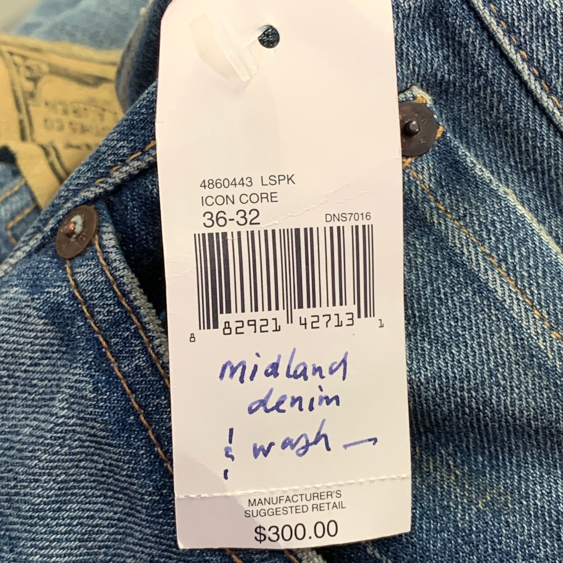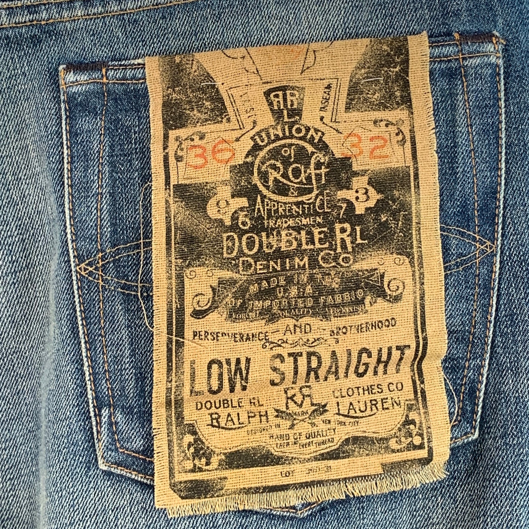 RRL by RALPH LAUREN Size 36 Blue Washed Cotton Selvedge Denim Twill Straight Jeans