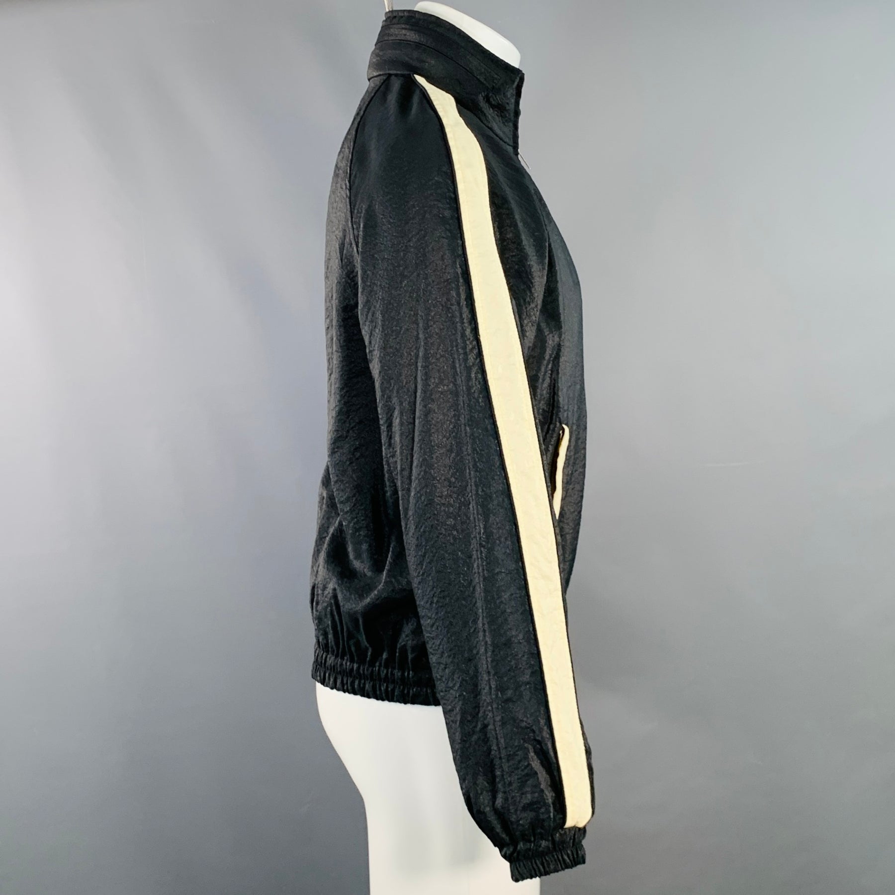 SAINT LAURENT Size 40 Black White Viscose Blend Zip Up Track Jacket