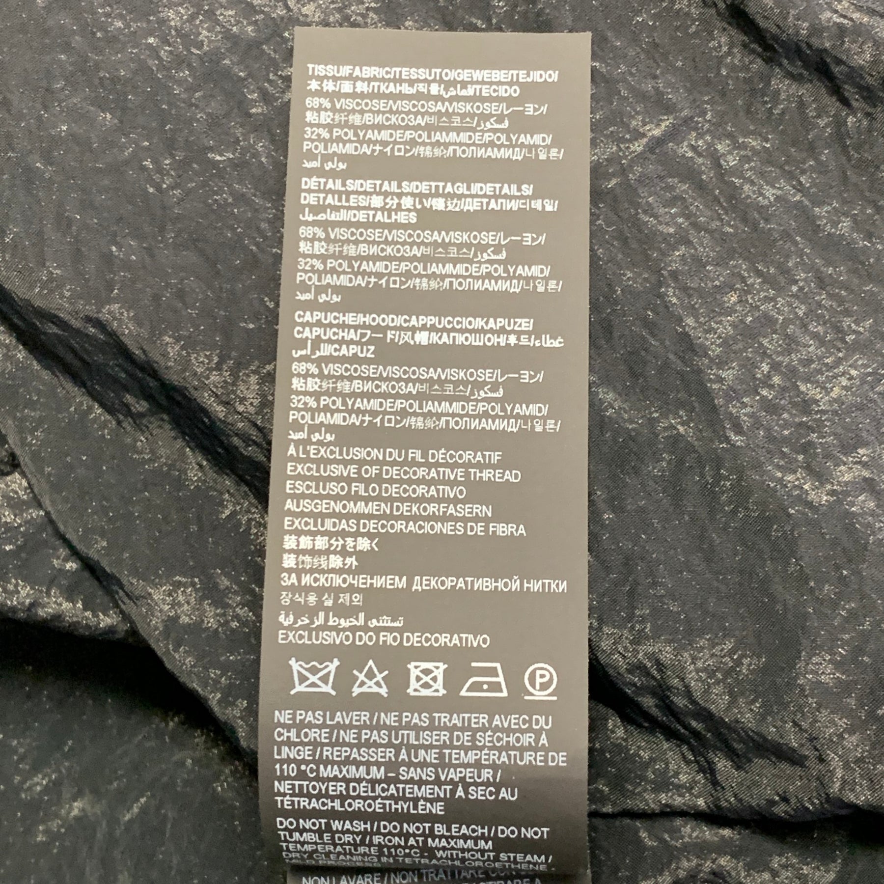 SAINT LAURENT track jacket in a black viscose blend fabric featuring white stripe trim, zip pockets, hidden hood, and zip up closure.