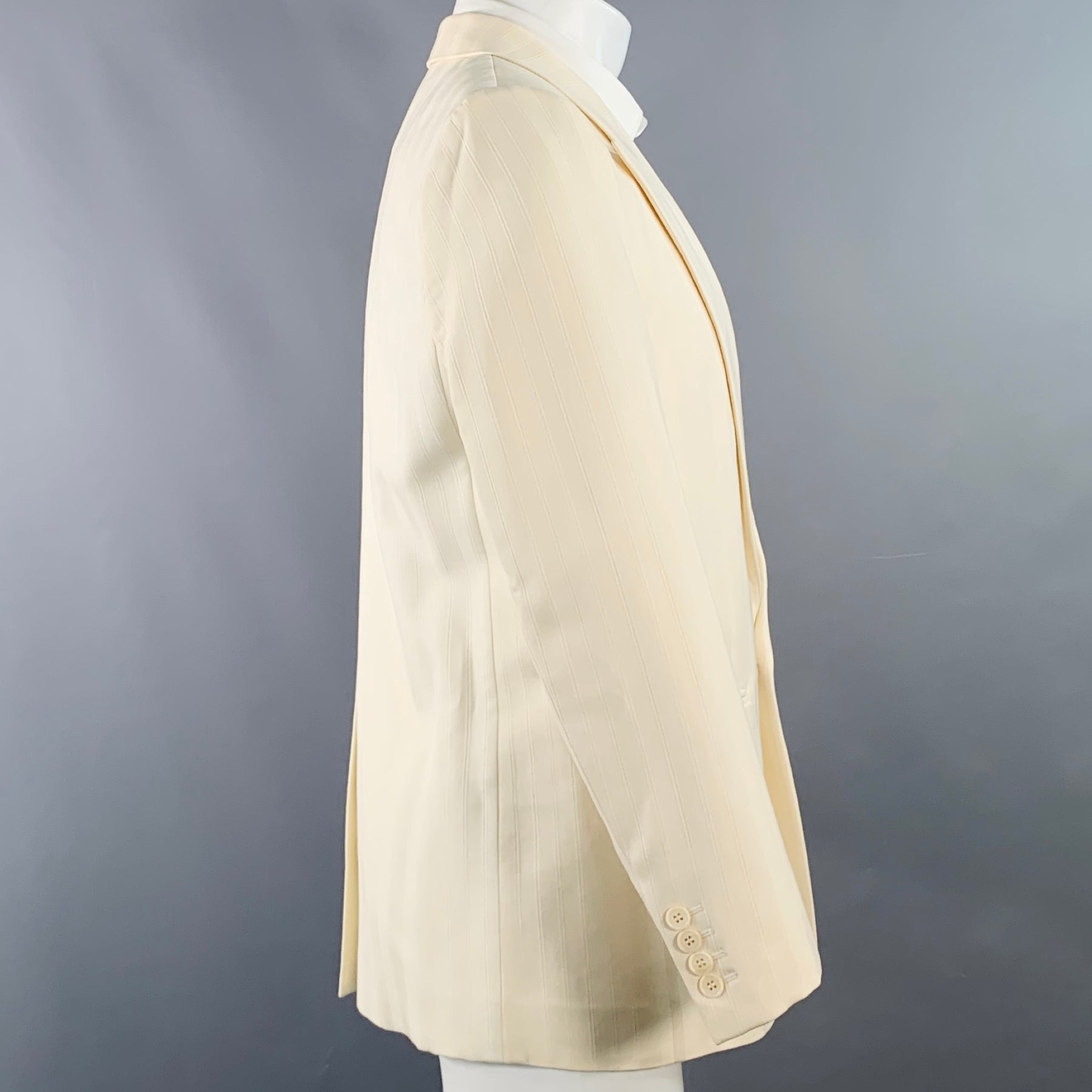 SAINT LAURENT Size 40 Regular Cream White Stripe Wool Peak Lapel Sport Coat
