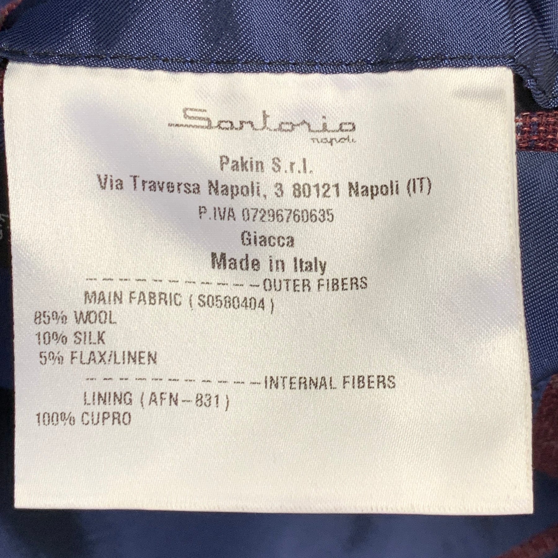 SARTORIO Size 44 Regular Burgundy Windowpane Wool Linen Silk Sport Coat
