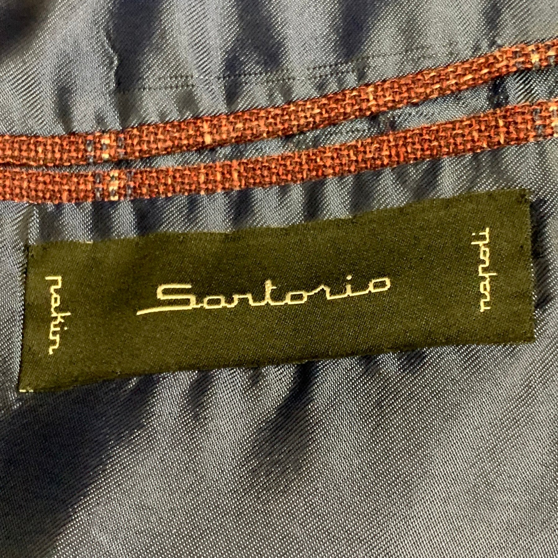 SARTORIO sport coat in a burgundy wool linen silk fabric featuring a windowpane pattern, notch lapel, double vented back, and double button closure.
