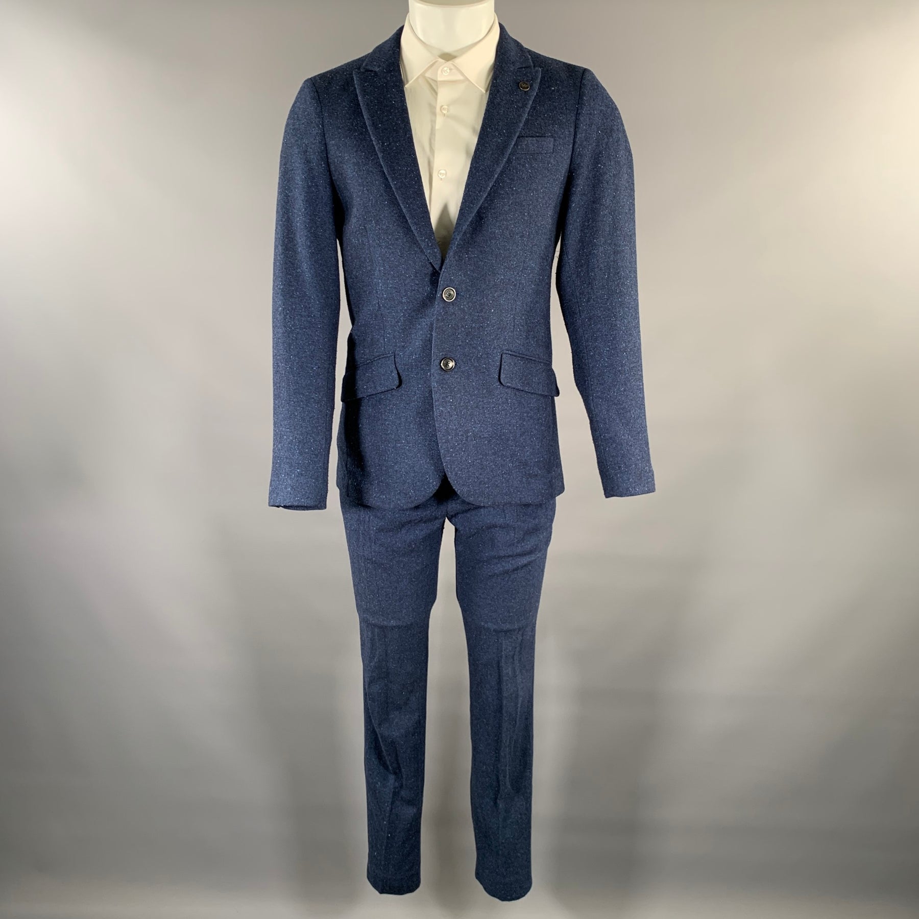SCOTCH AND SODA Size 38 Navy Speckled Wool Blend Peak Lapel Suit