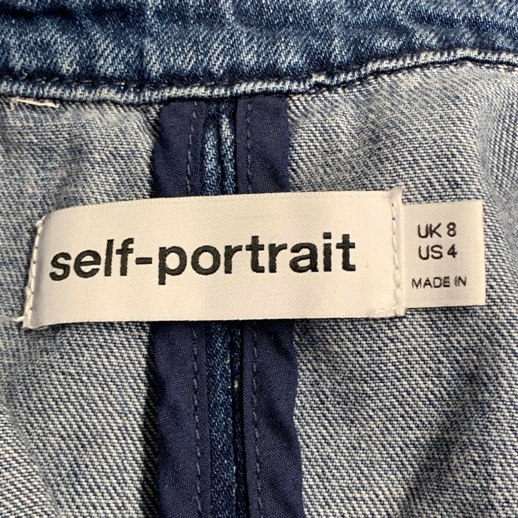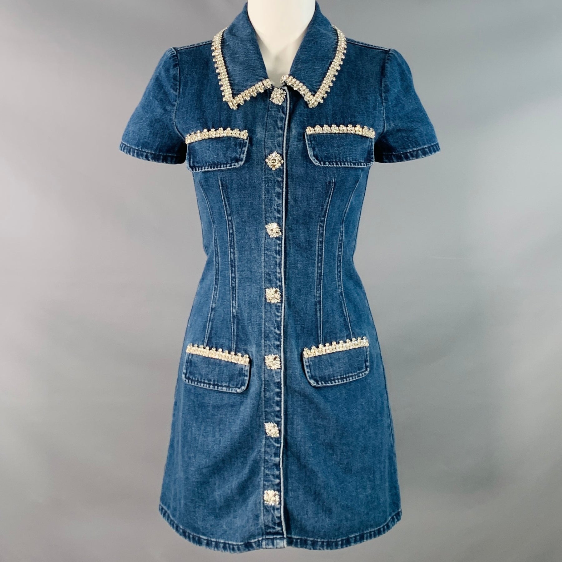SELF-PORTRAIT Size 4 Blue Silver Denim Twill Rhinestone Trim Mini Dress
