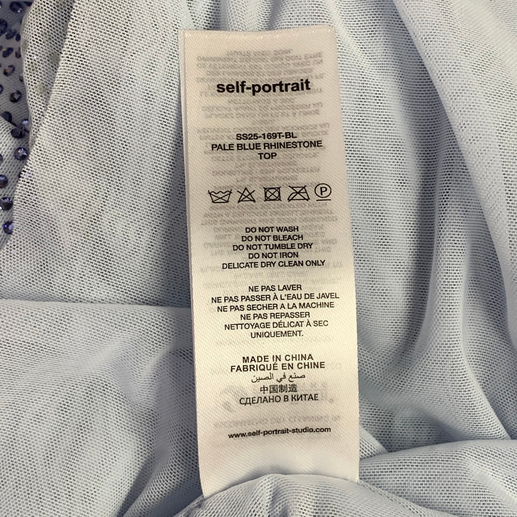 SELF-PORTRAIT SS25 Size 2 Pale Blue Polyester Blend Rhinestones Ruched Cutouts Dress Top
