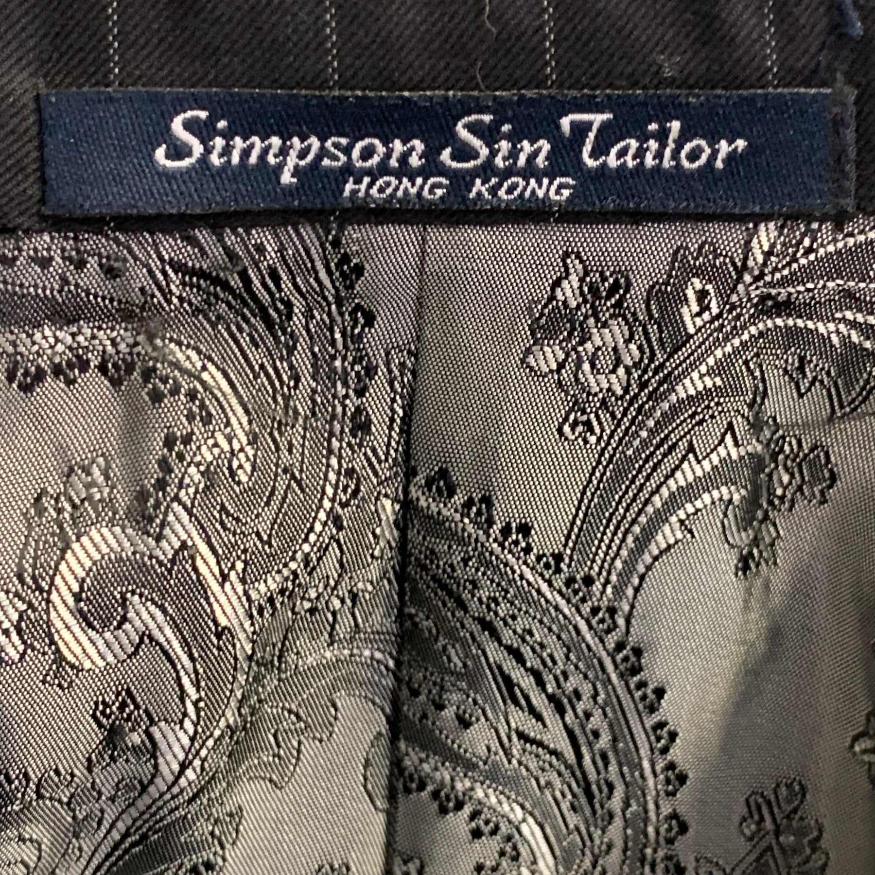 SIMPSON SIN TAILOR Size 42 Long Black White Pinstripe Wool Silk Suit