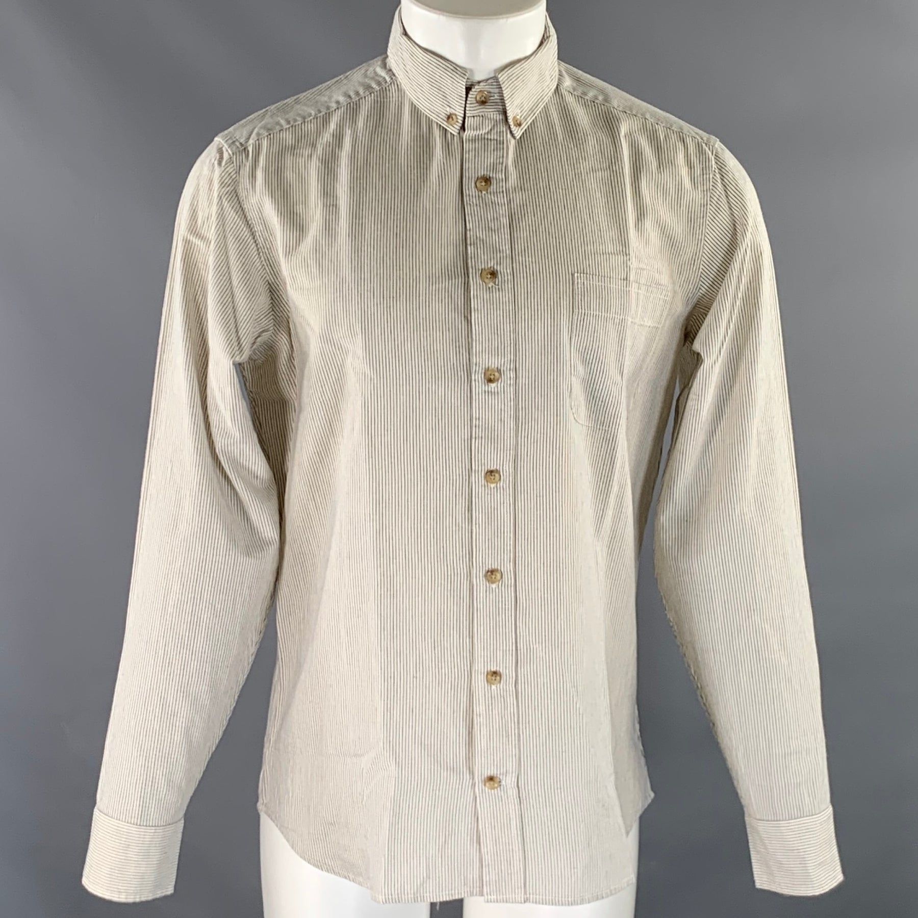 TAYLOR STITCH Size M White Navy Stripe Cotton Button Down Long Sleeve Shirt