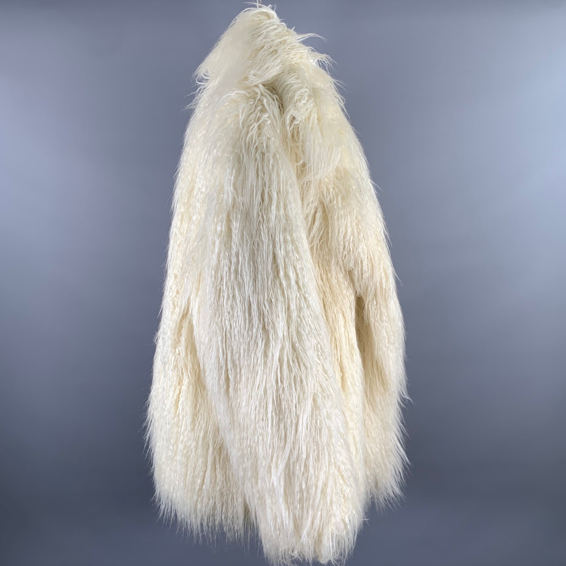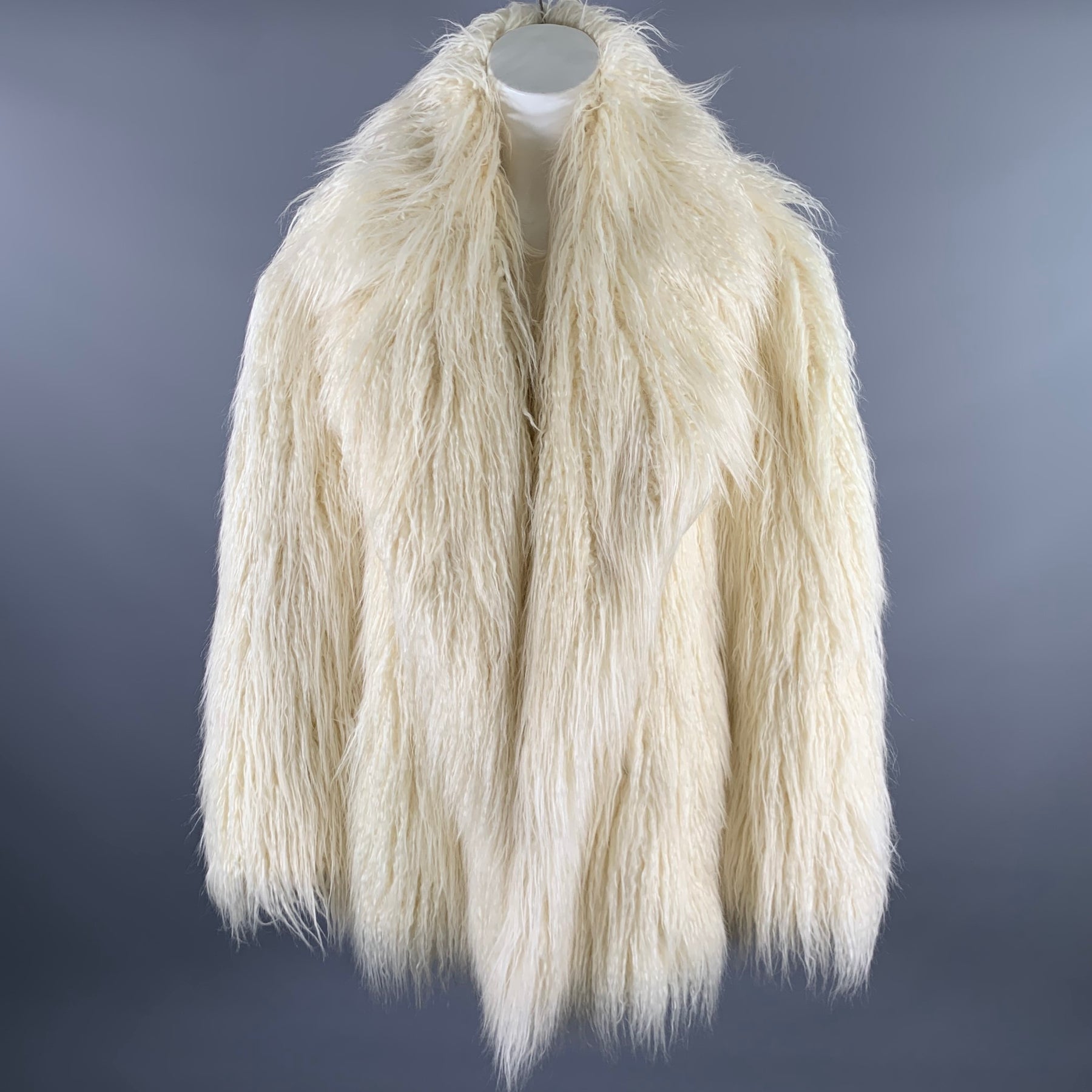 THE FRANKIE SHOP Size M/L Off White Modacrylic Blend Faux Fur Notch Lapel Coat