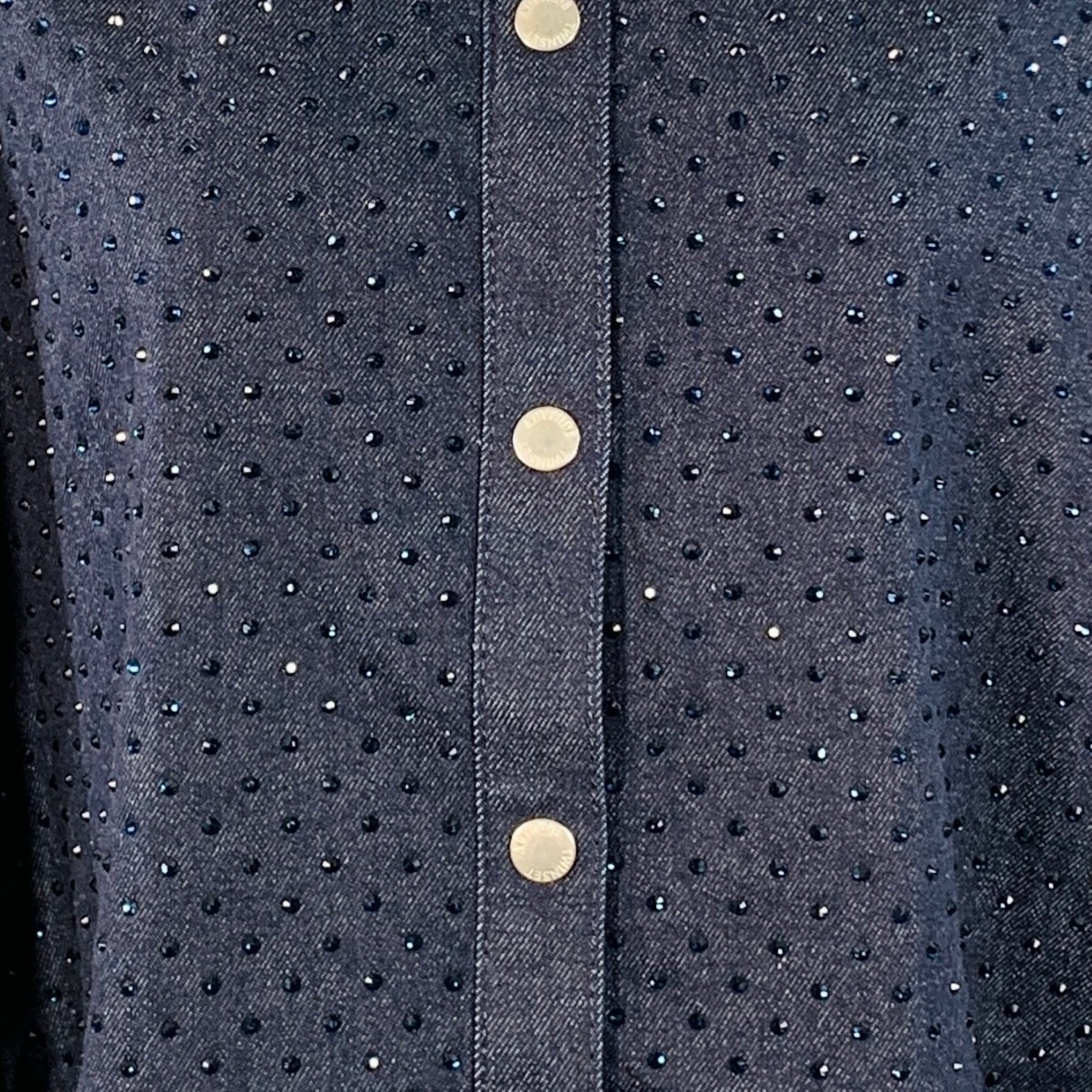 TWINSET ACTITUDE Size XS Indigo Blue Denim Rhinestones Snaps Shirt