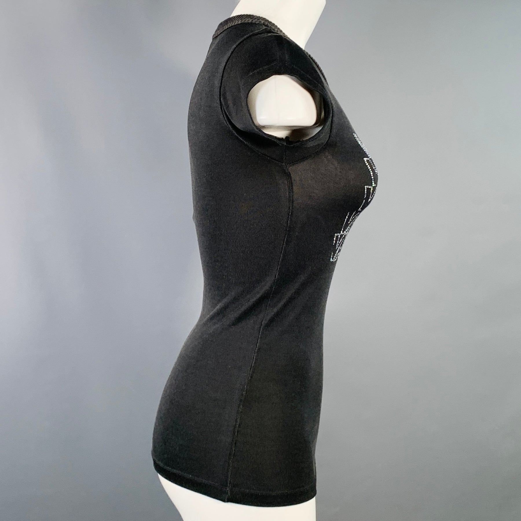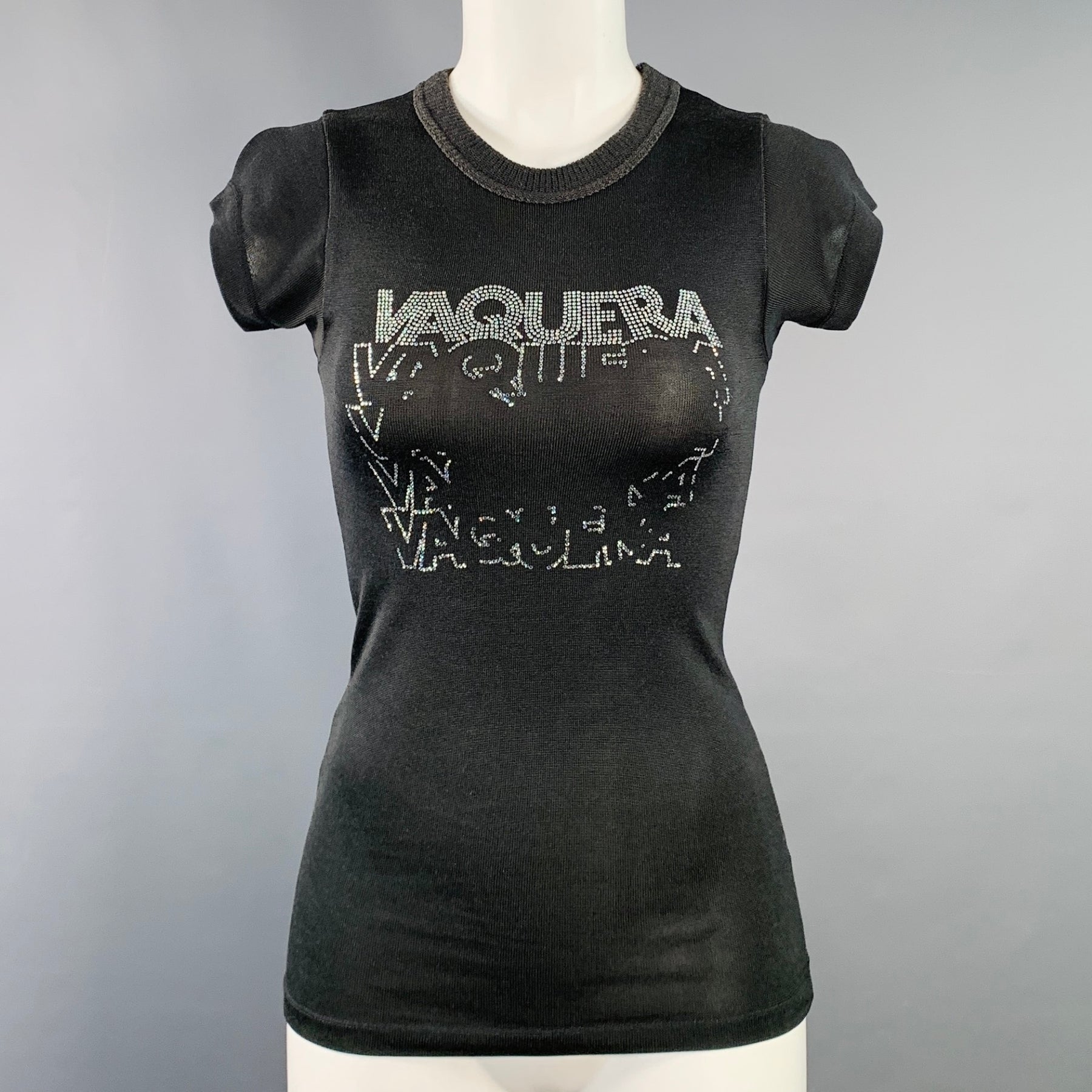 VAQUERA t-shirt in a deep charcoal grey cotton stretch blend jersey featuring a fitted style, short sleeves, and rhinestone logo design.