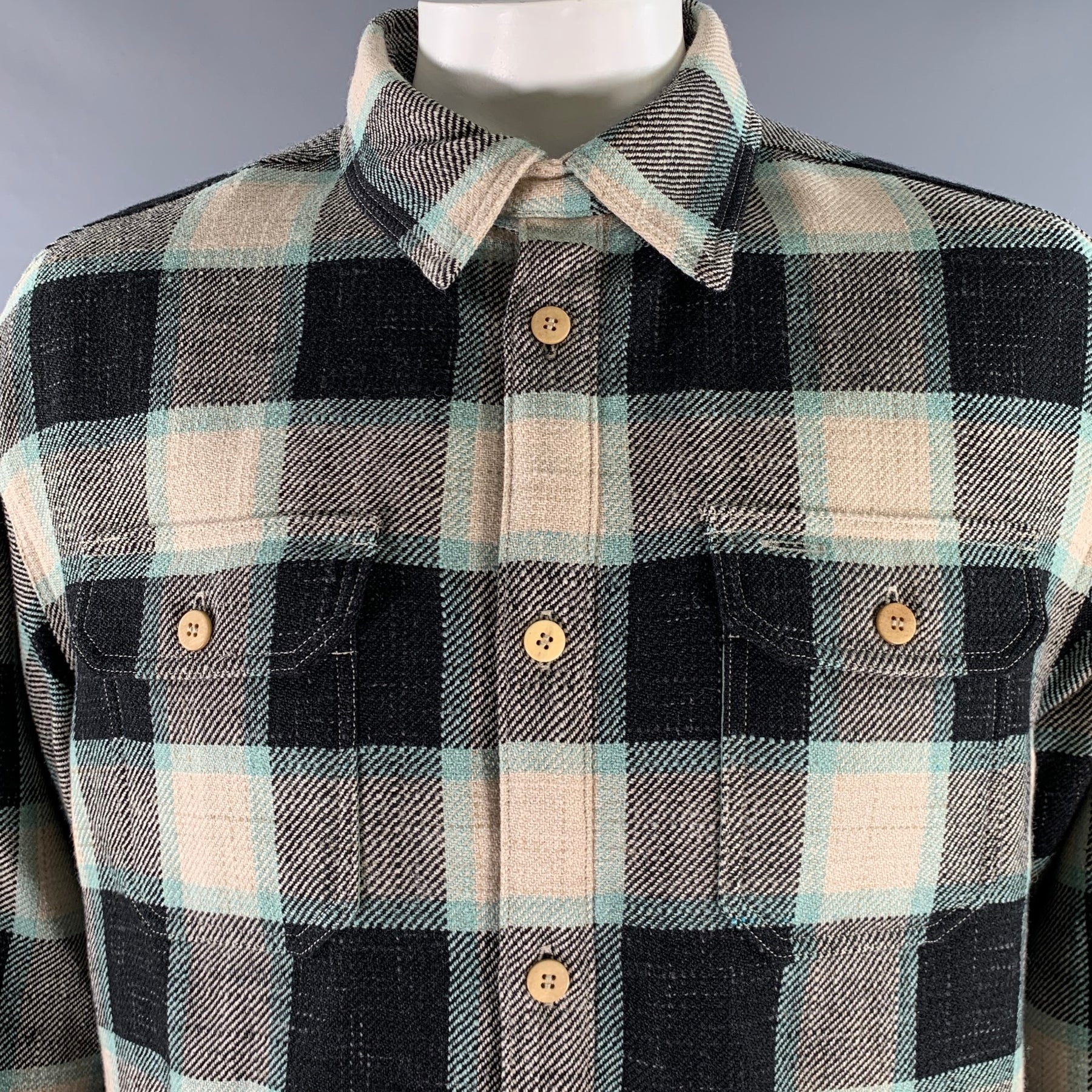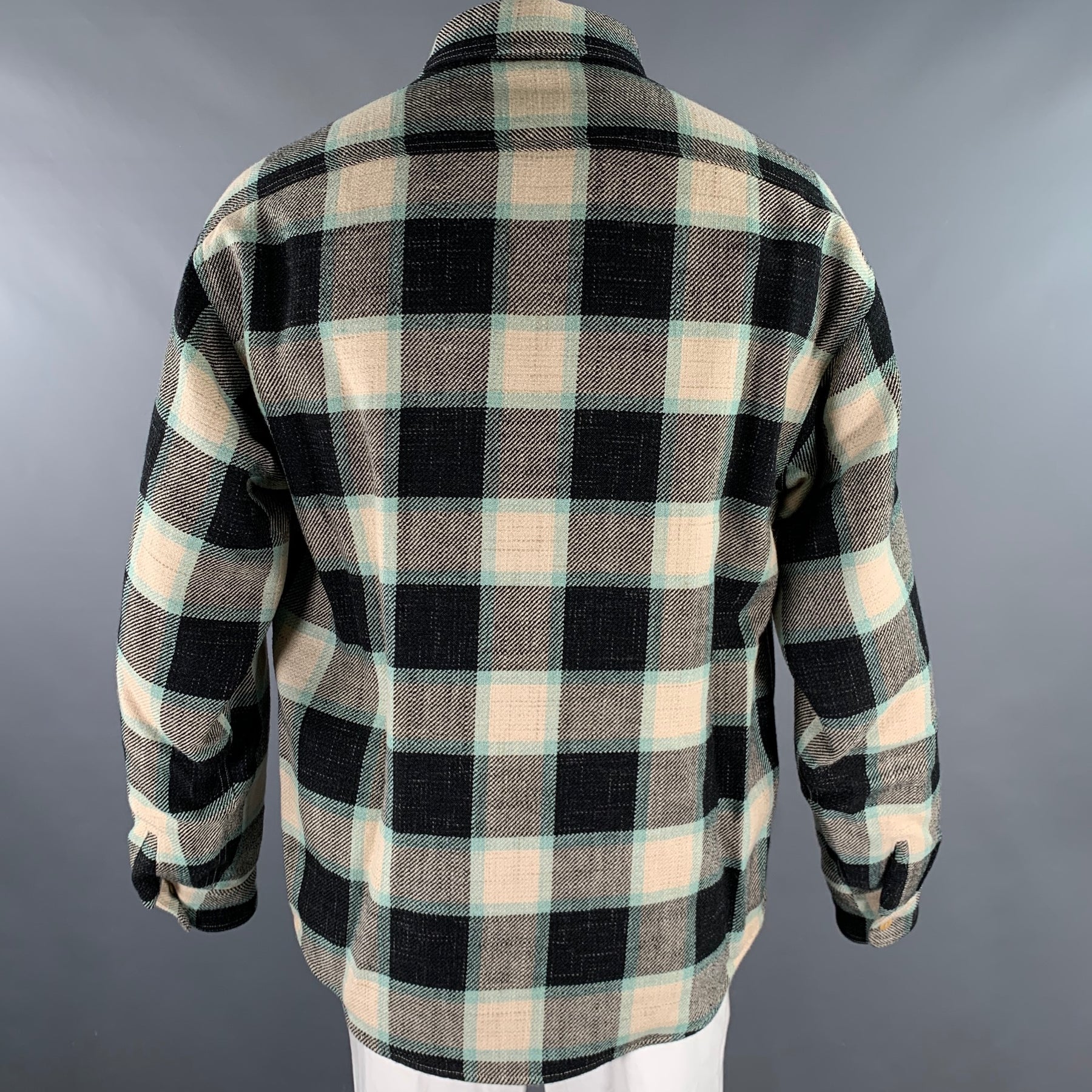 VISVIM Size L Black Green Beige Plaid Wool Linen Down Filled Jacket