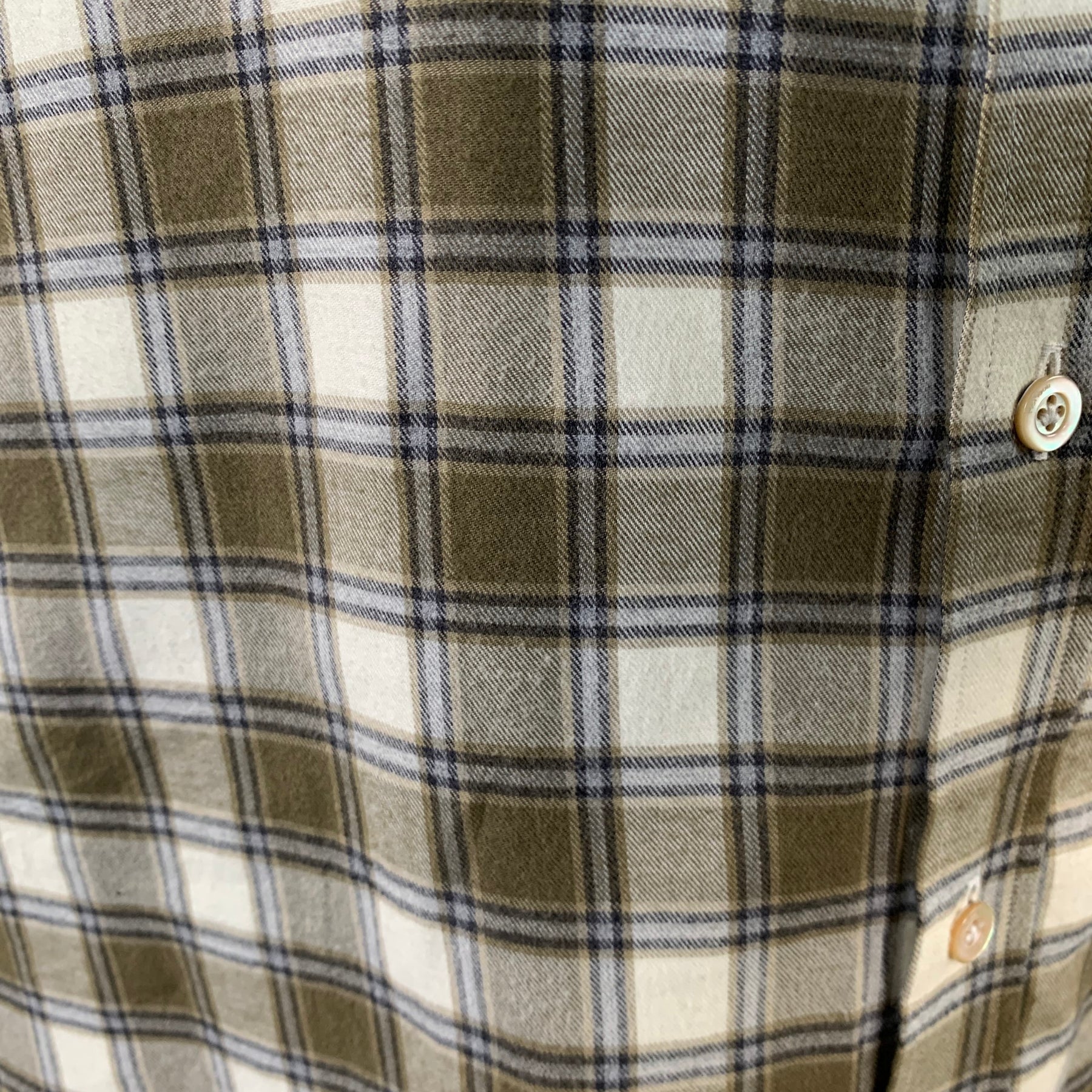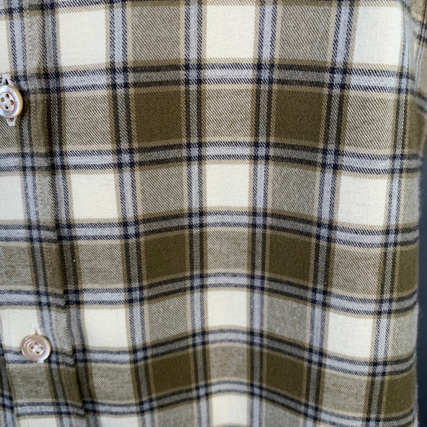 BOGLIOLI Size L Cream Olive Plaid Cotton Twill Spread Collar Long Sleeve Shirt