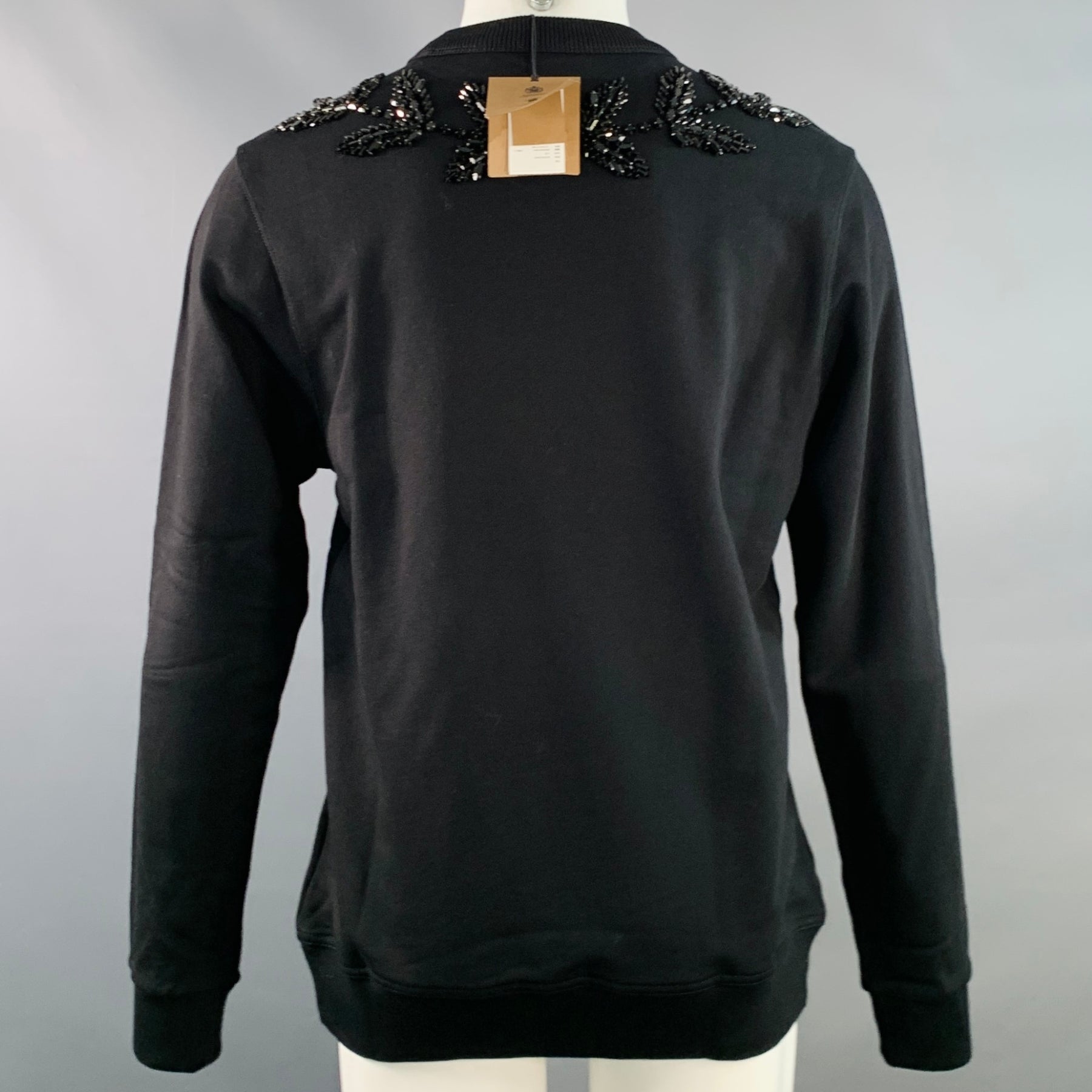 BURBERRY Size S Pancras Black Crystal Embellishment Cotton Crew Neck Sweatshirt