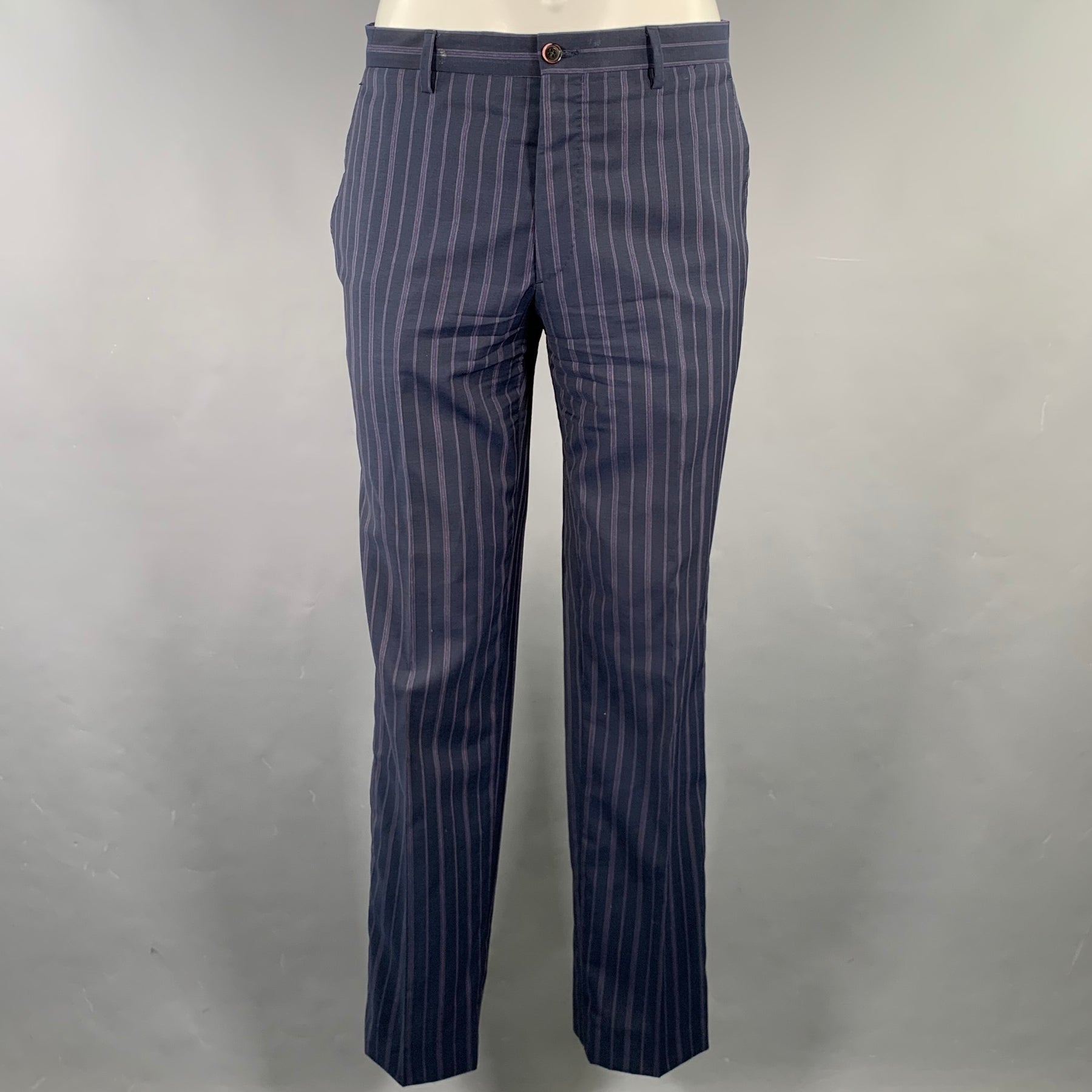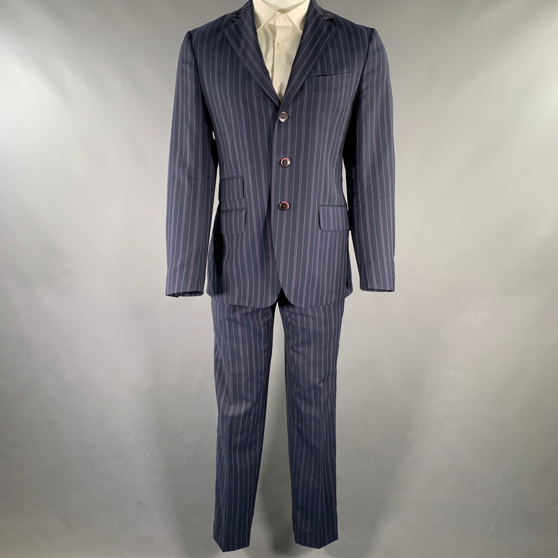 ETRO Size 38 Navy Purple Pinstripe Wool Notch Lapel Suit