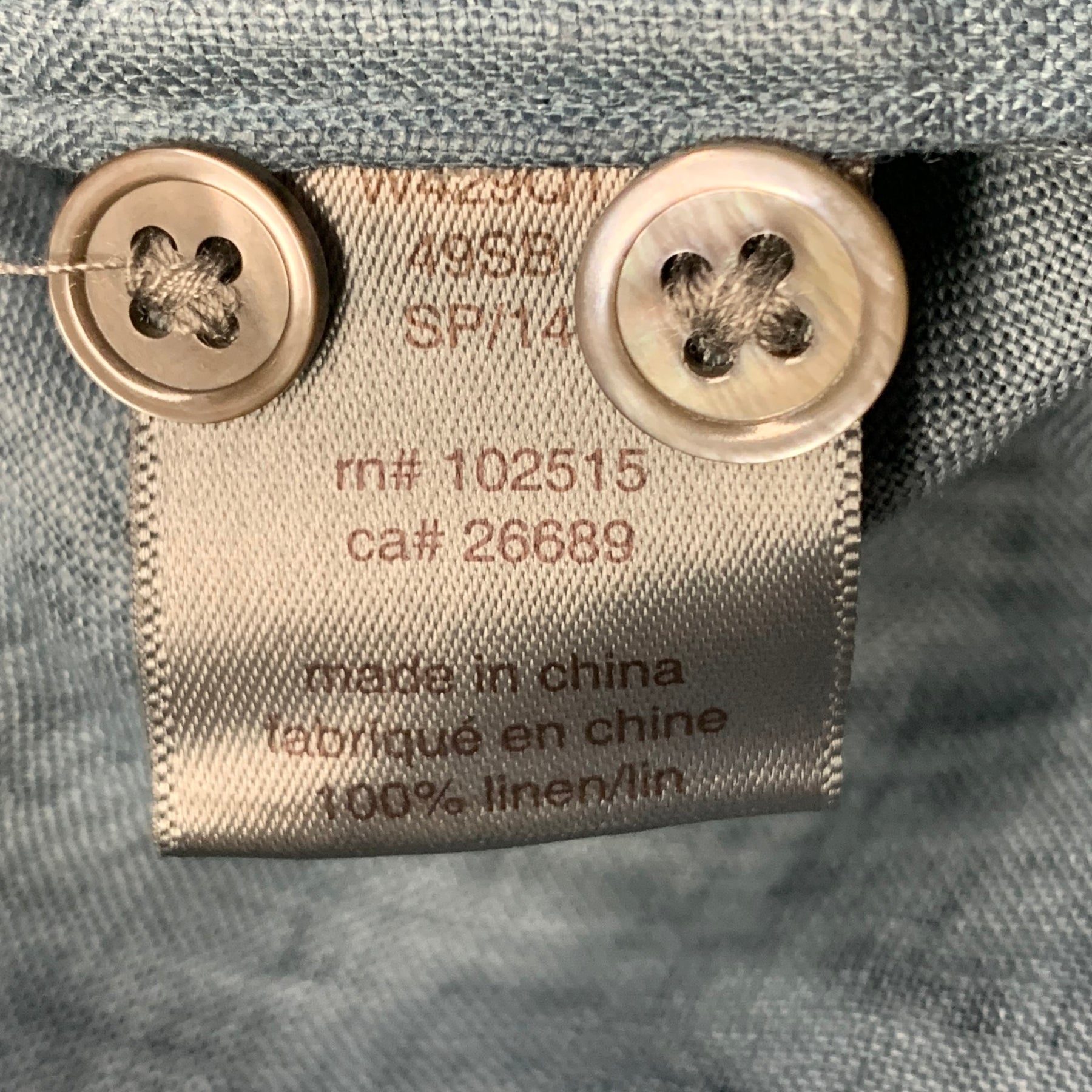 JOHN VARVATOS Size L Blue Dyed Linen Wingtip Long Sleeve Shirt