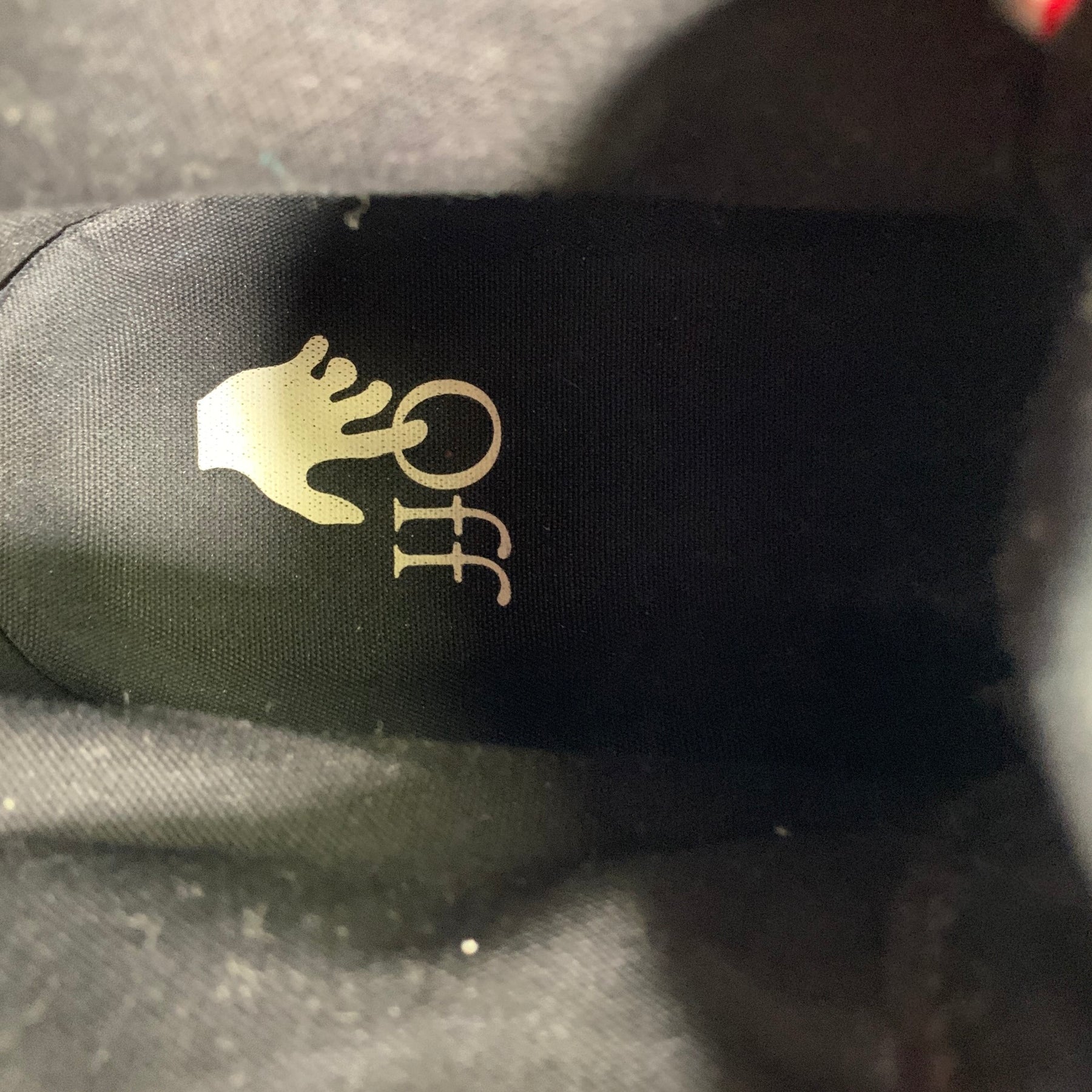 OFF-WHITE Size 13 Black Red Logo Canvas High Top Sneakers