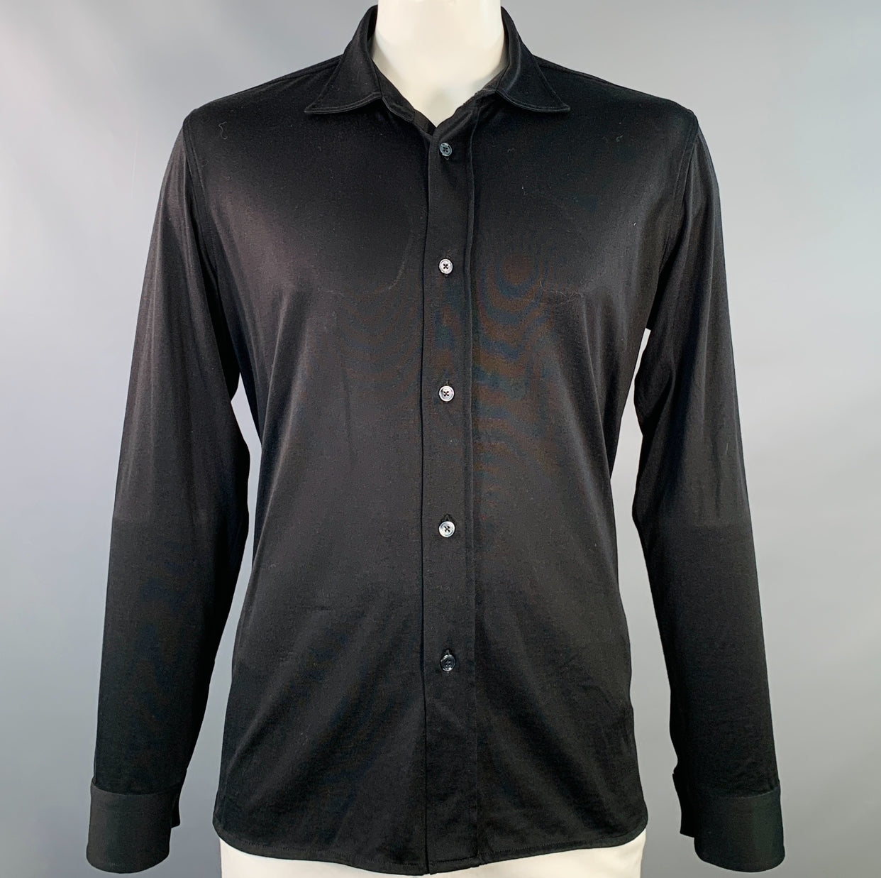 TOM FORD Size XXL Black Triacetate Blend Cutaway Long Sleeve Shirt