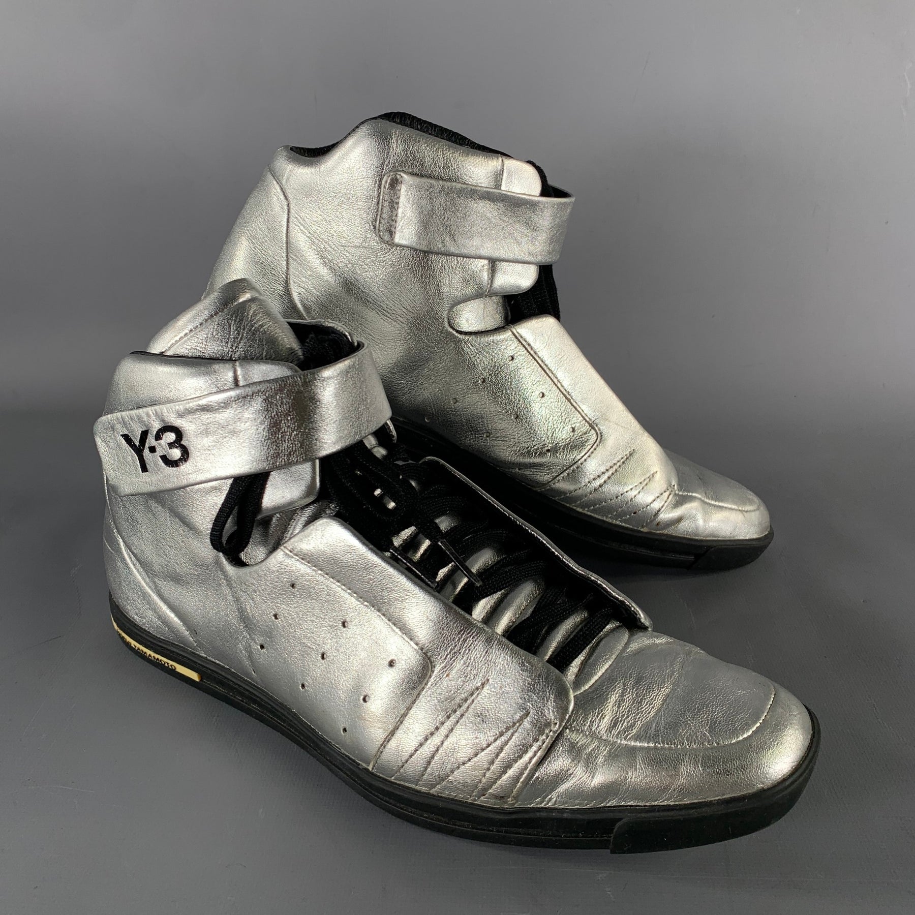 Y-3 Size 10.5 Silver Shimmery Leather High Top Sneakers