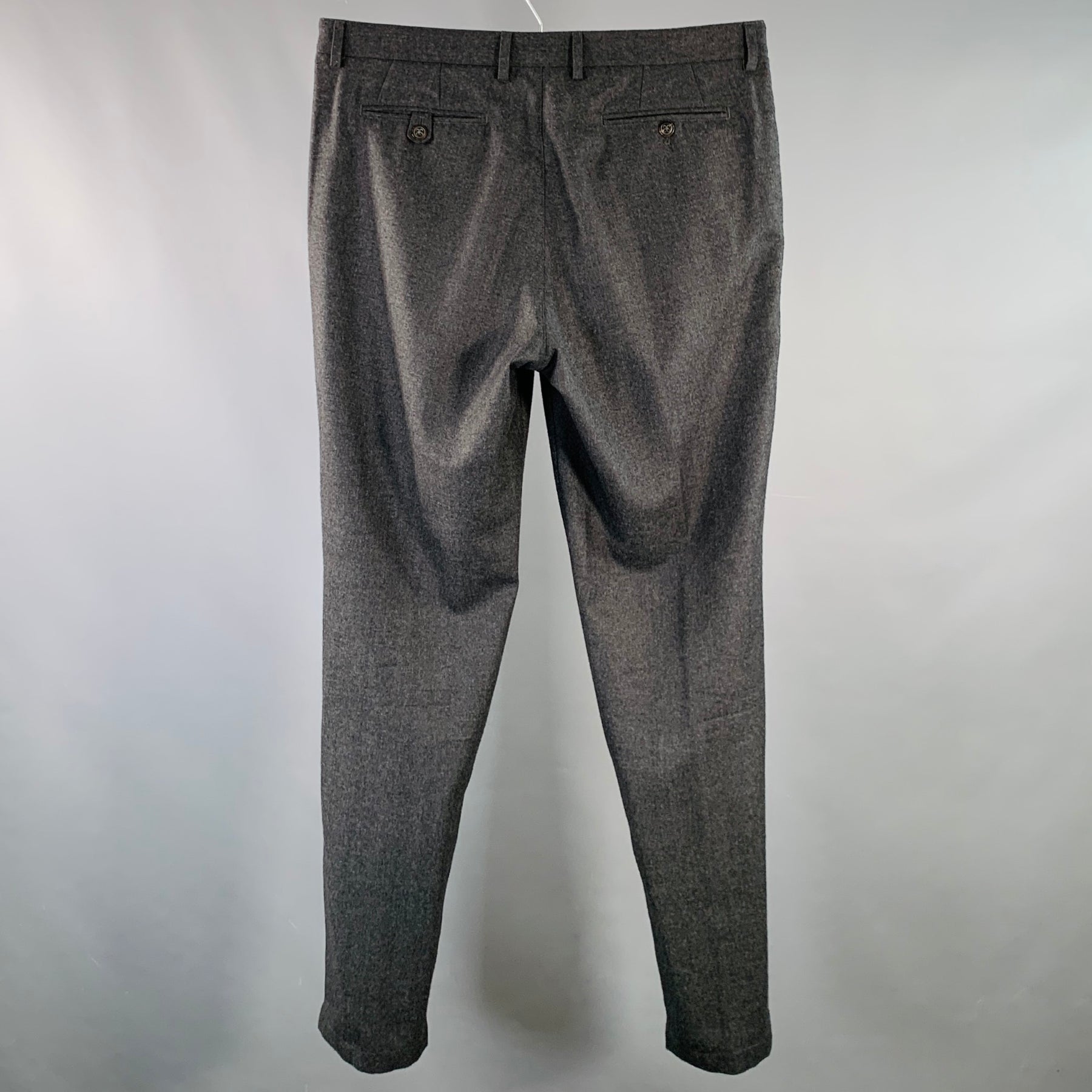 ADAM KIMMEL Size L Charcoal Grey Wool Twill Tapered Zip Fly Dress Pants