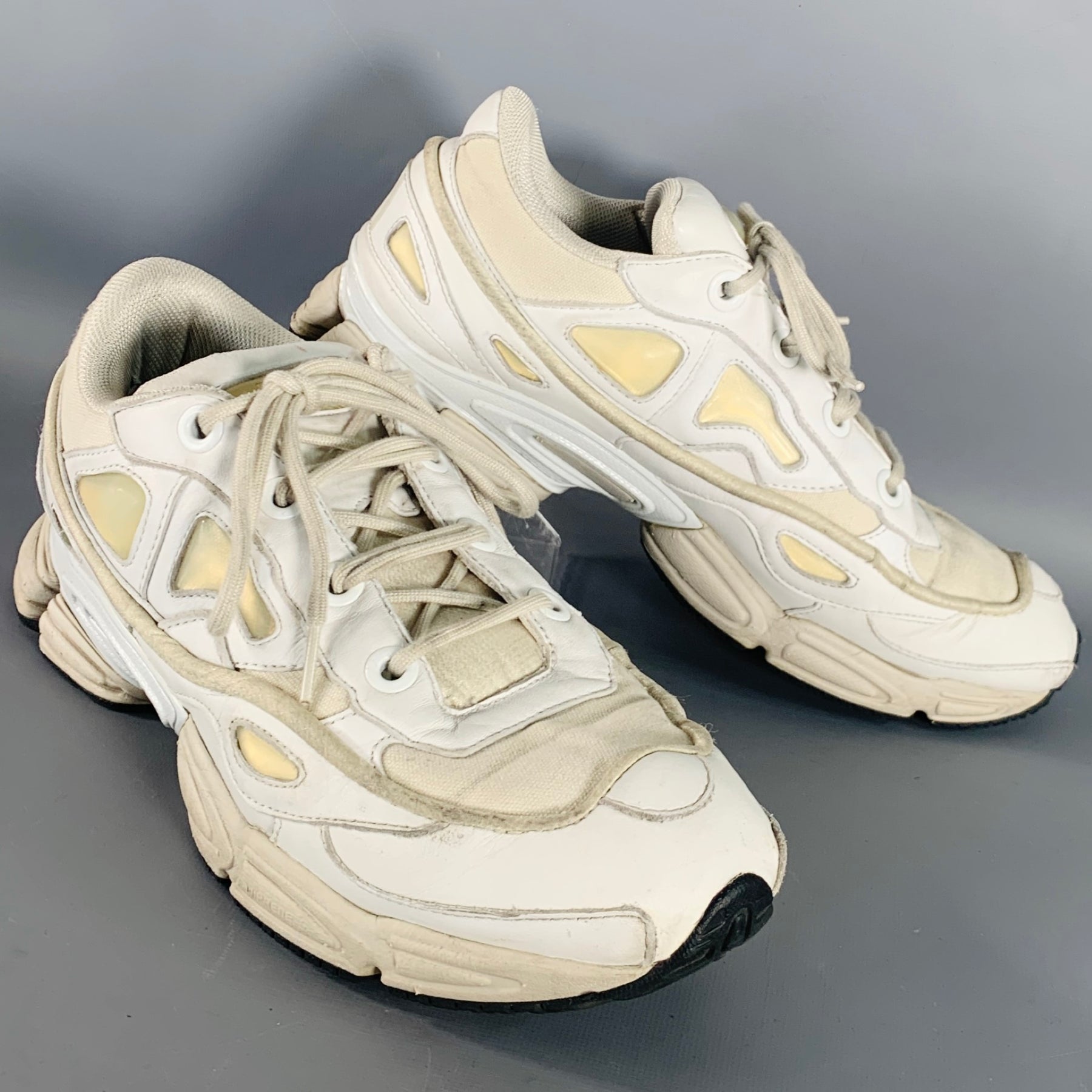 ADIDAS x RAF SIMONS Size 10 Ozweego Bunny White Cream Leather Canvas Runner Sneakers