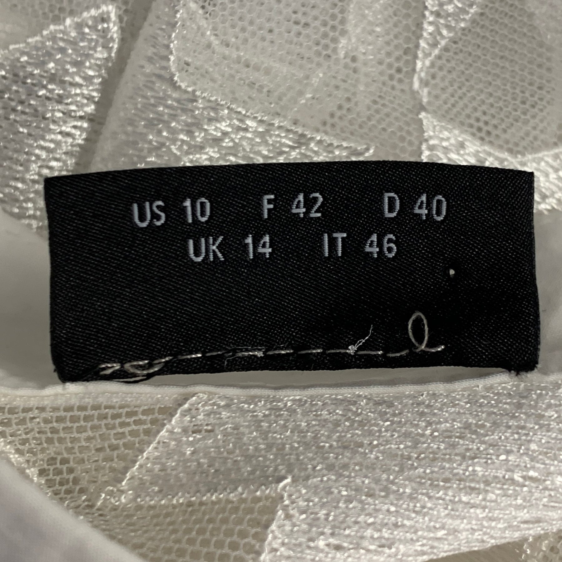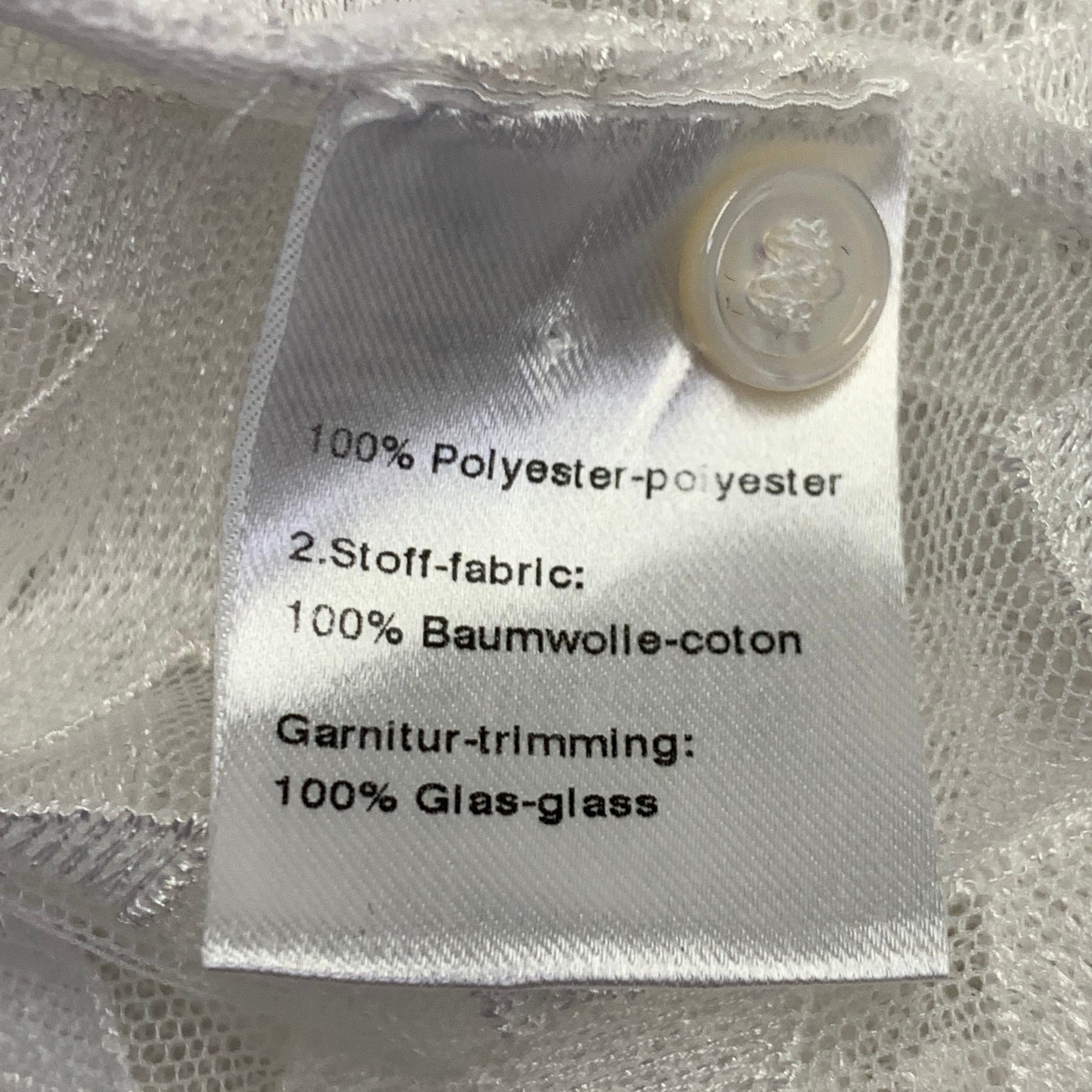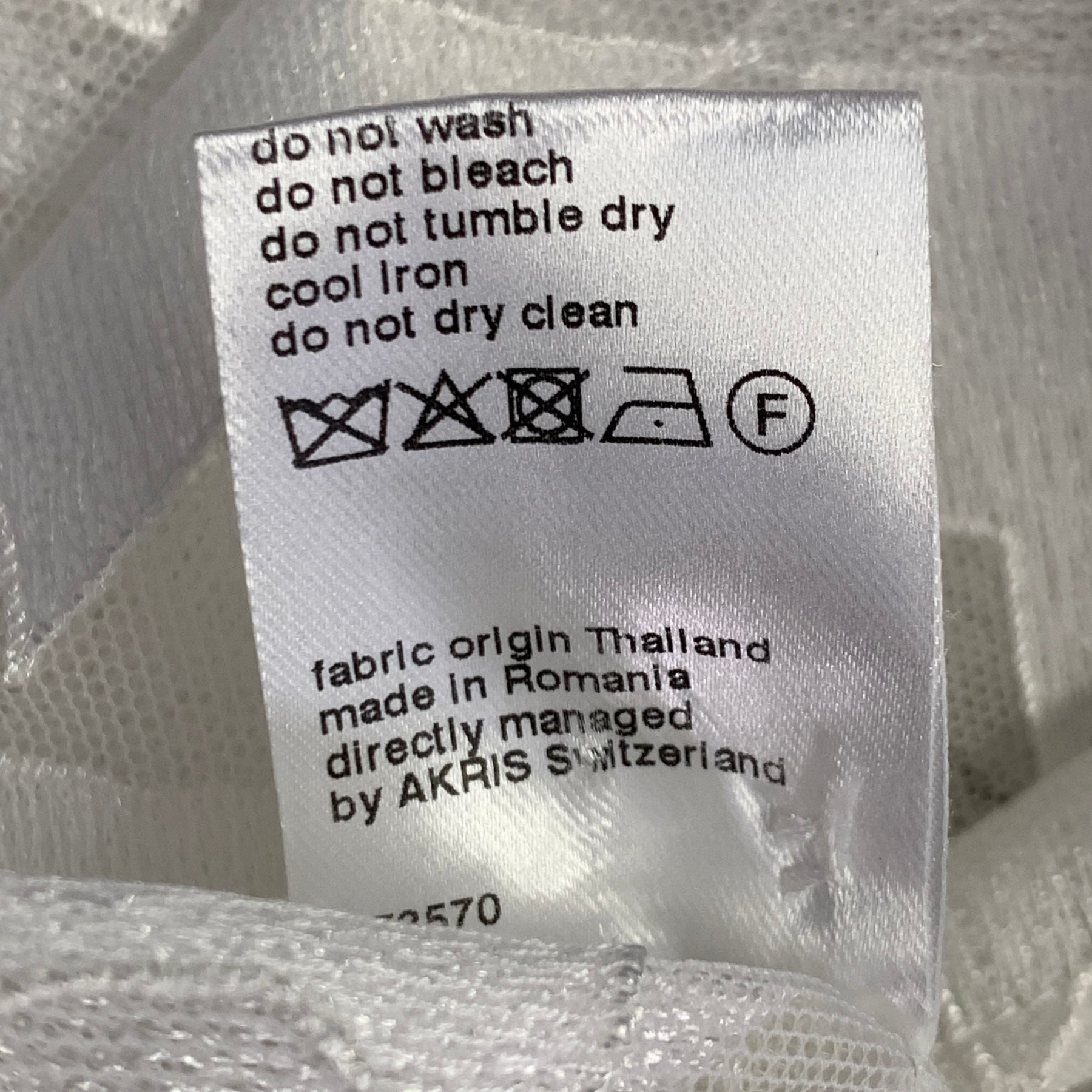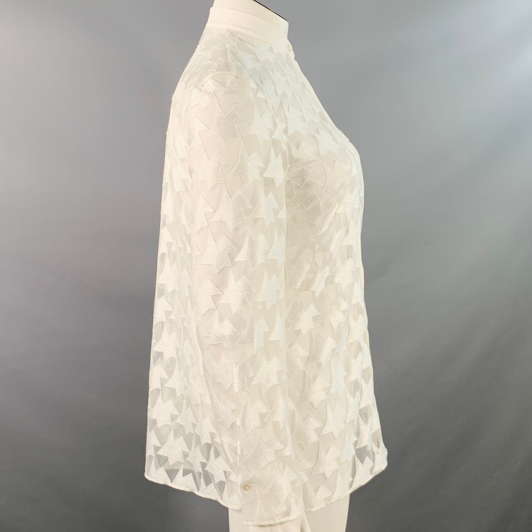AKRIS Size 10 White Polyester Abstract Lace Nehru Collar Shirt