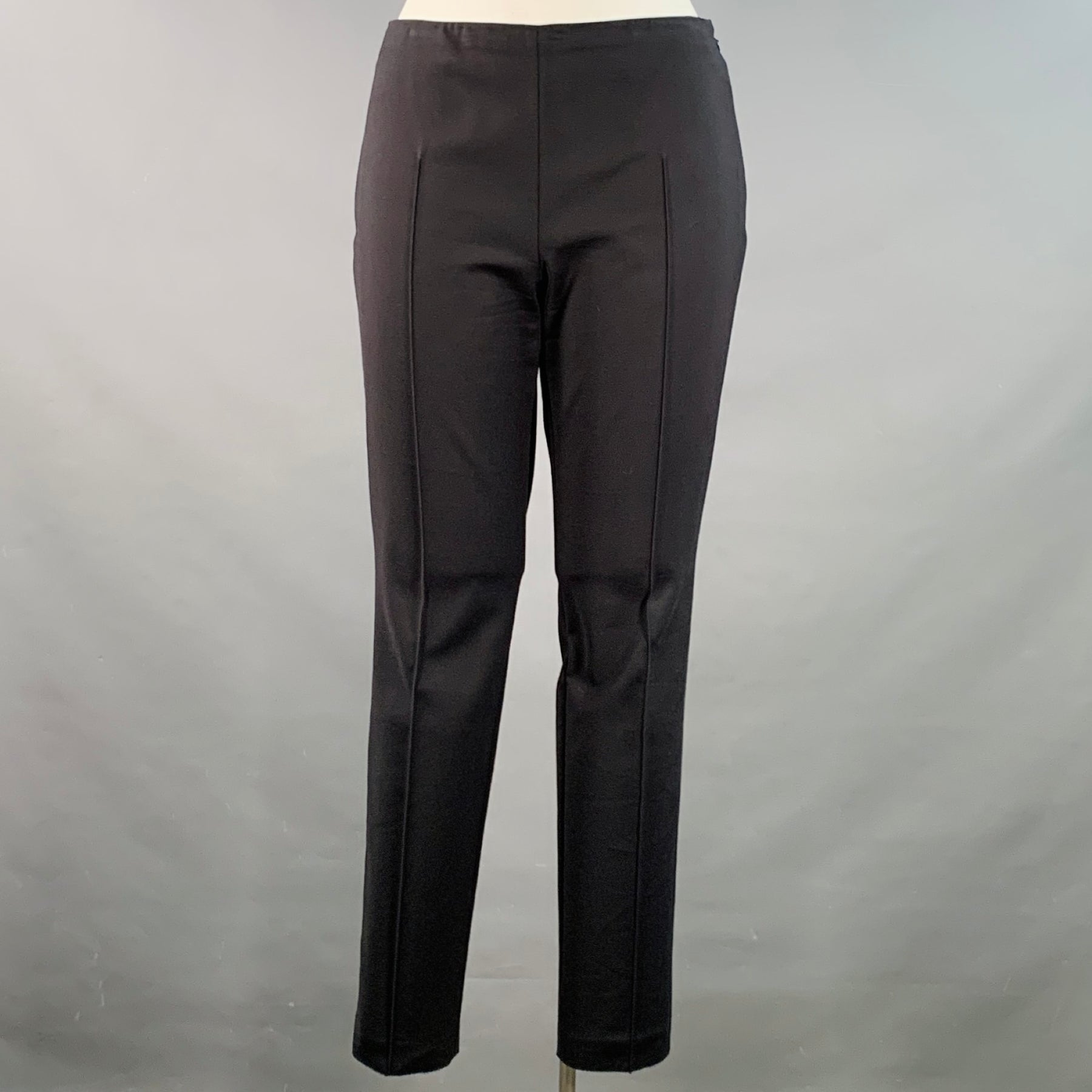 AKRIS Size 12 Black Cotton Blend Tapered Side Zipper Dress Pants