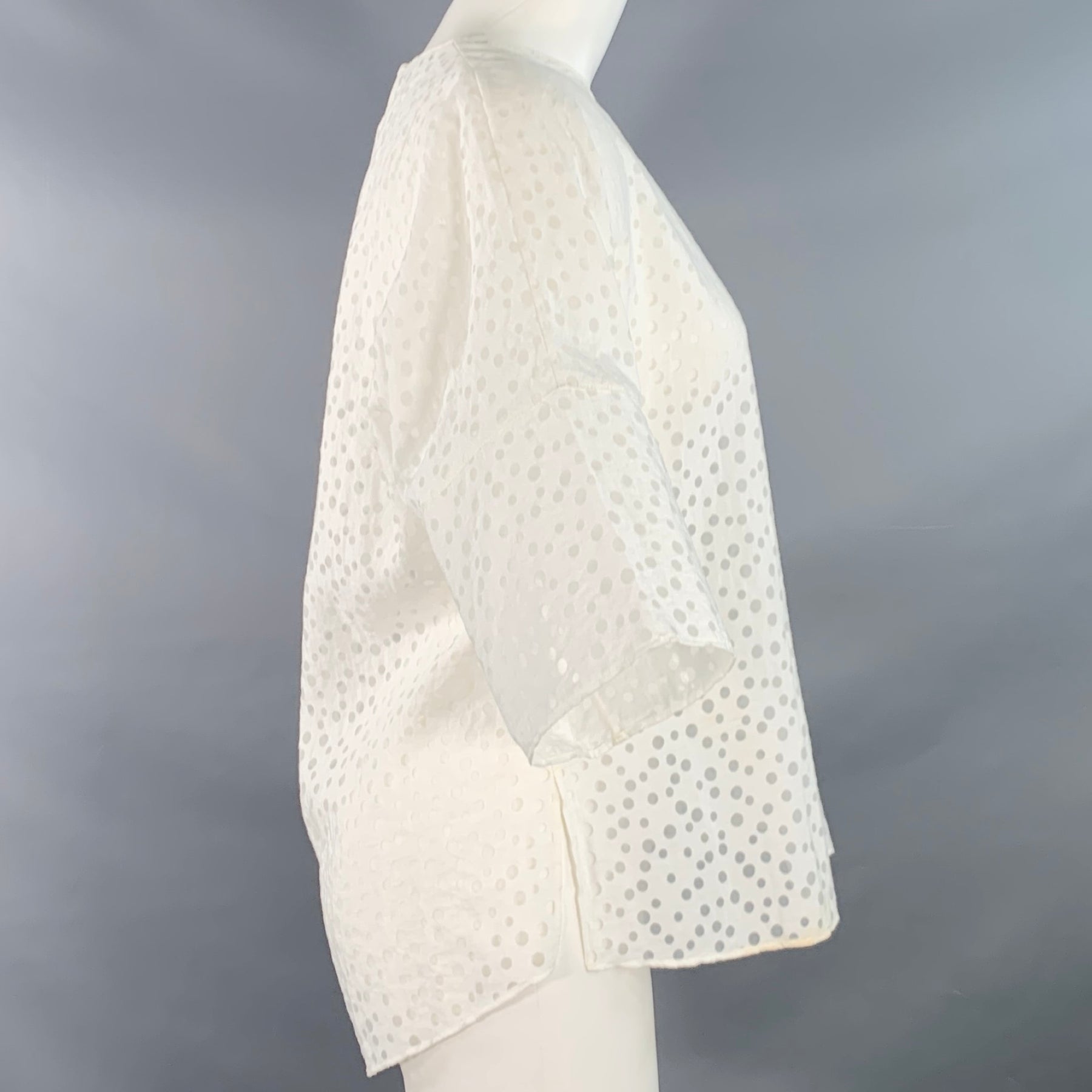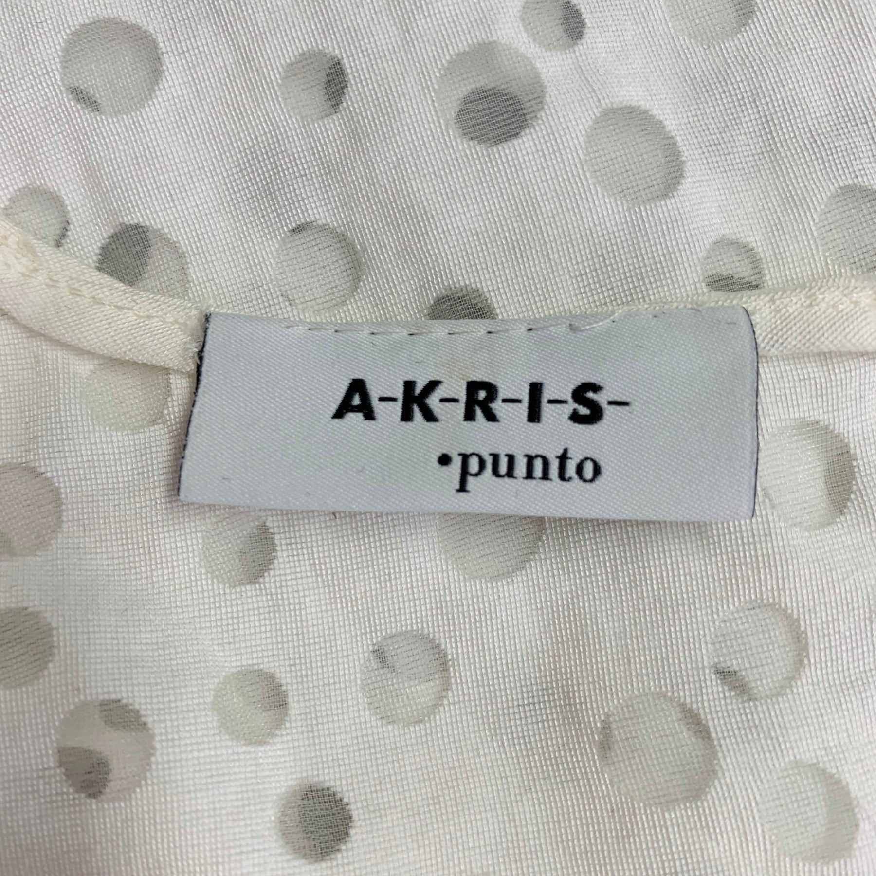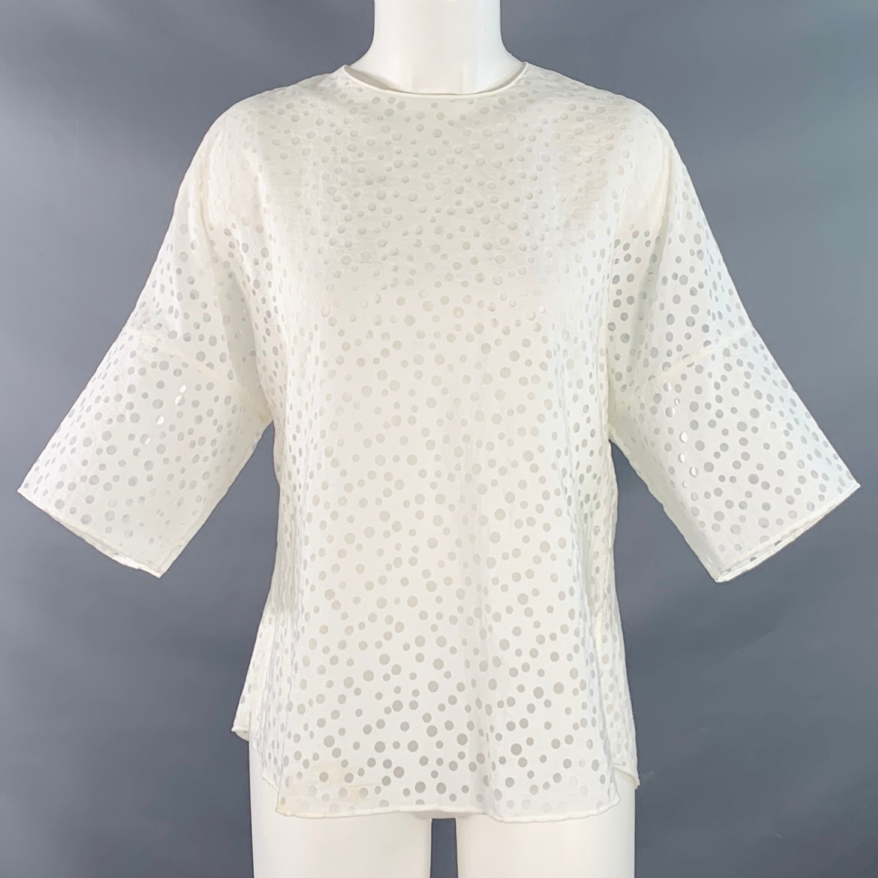 AKRIS Size 6 White Viscose Blend Dots Short Sleeve Crew Neck Casual Top