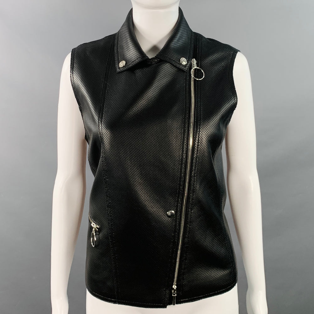 AKRIS Size 8 Black Perforated Lambskin Leather Zip Up Vest