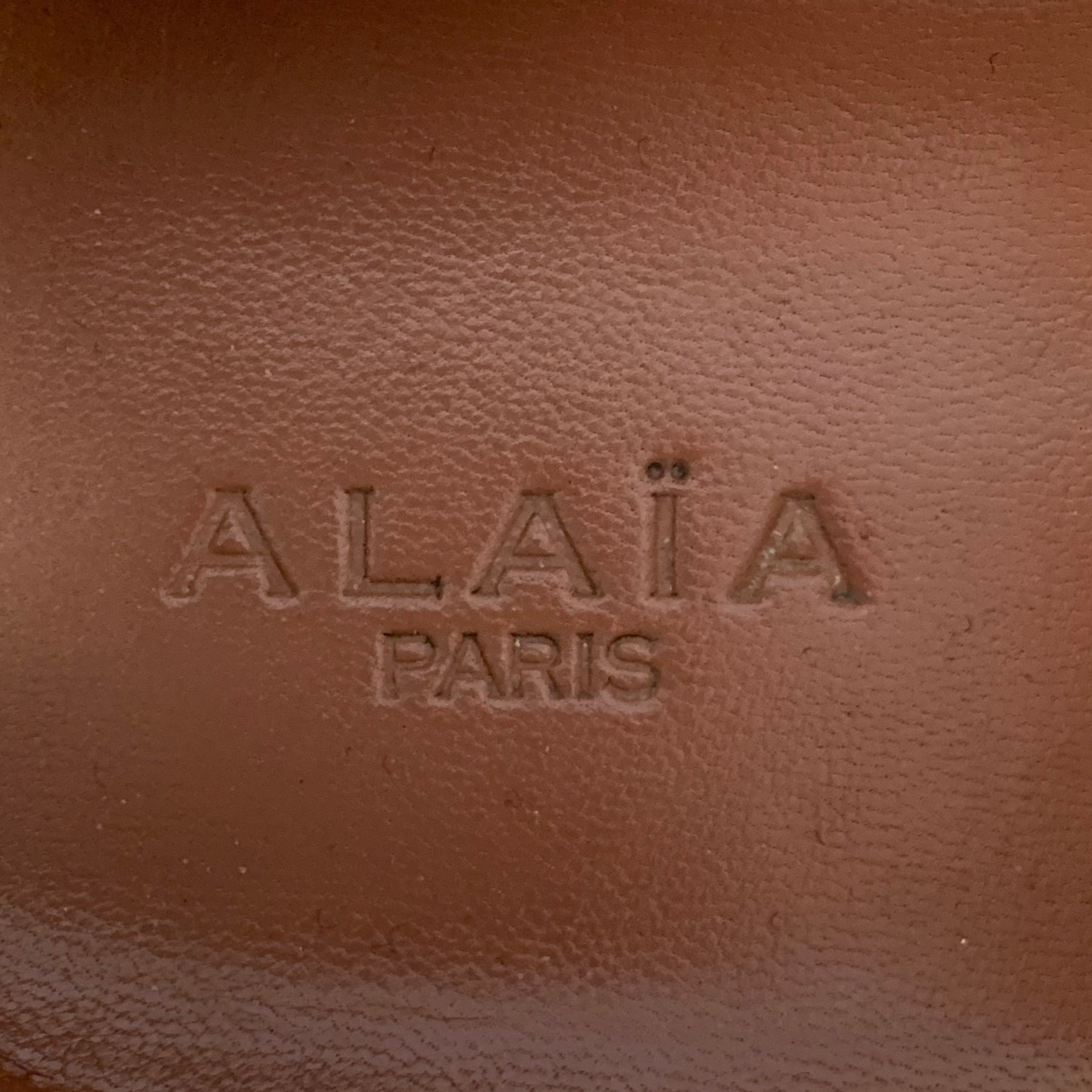 ALAIA sneakers in a white and metallic silver tone leather featuring a perforated design with silver tone underlayer, low top style, and rubber sole. Comes with dust bag. Shoe trees not included. Made in Italy.