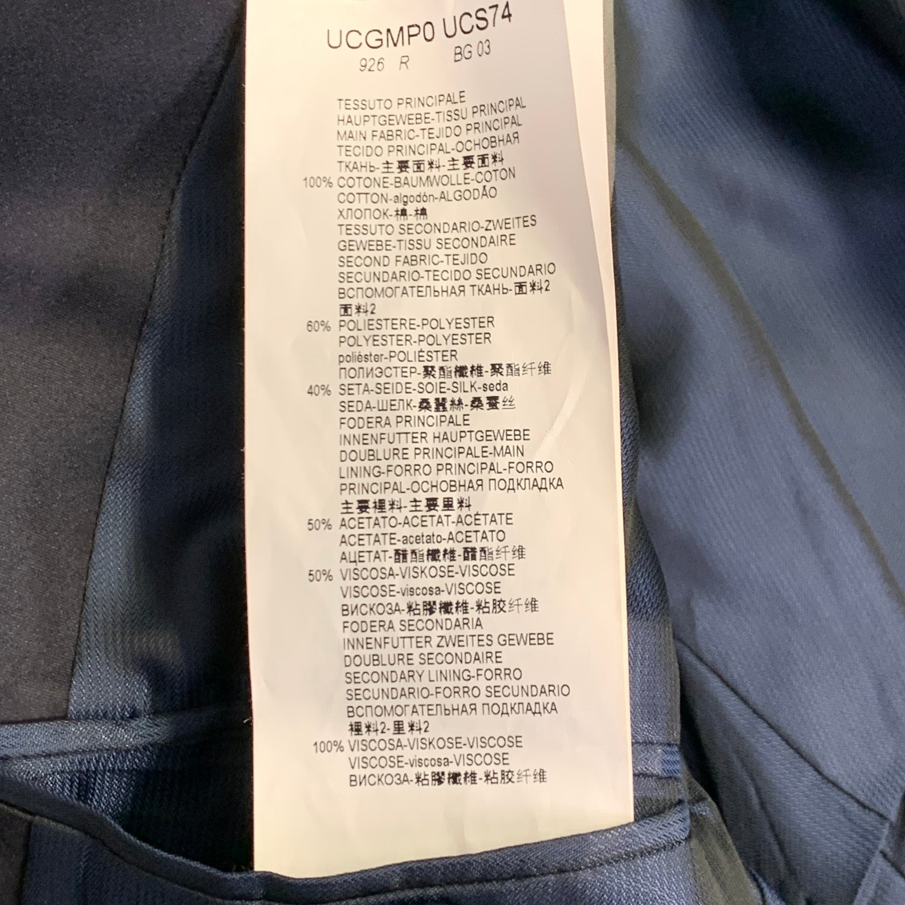 ARMANI COLLEZIONI Size 42 Navy Black Plaid Cotton Velvet Peak Lapel Sport Coat