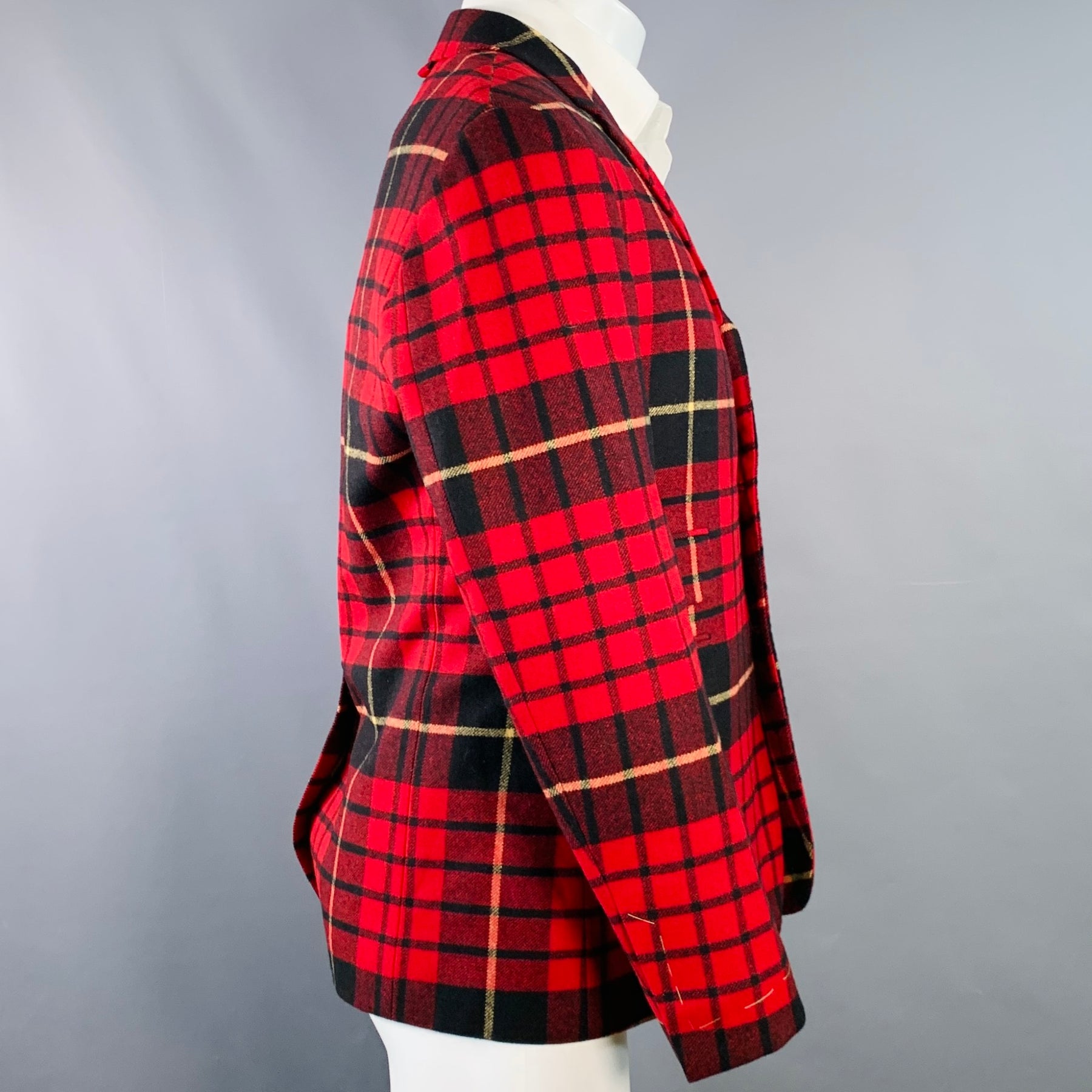 BLACK FLEECE by THOM BROWNE Size 40 Red Black Yellow Plaid Wool Notch Lapel Sport Coat