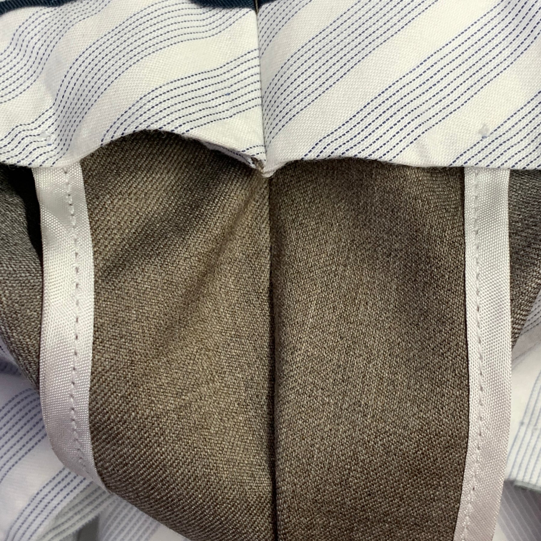 BROOKS BROTHERS "Regent Fit" dress pants in a heather brown and beige wool stretch blend fabric featuring a flat front style, straight leg, and zip fly closure. Hem has been left unfinished in order to tailor to your perfect fit.
