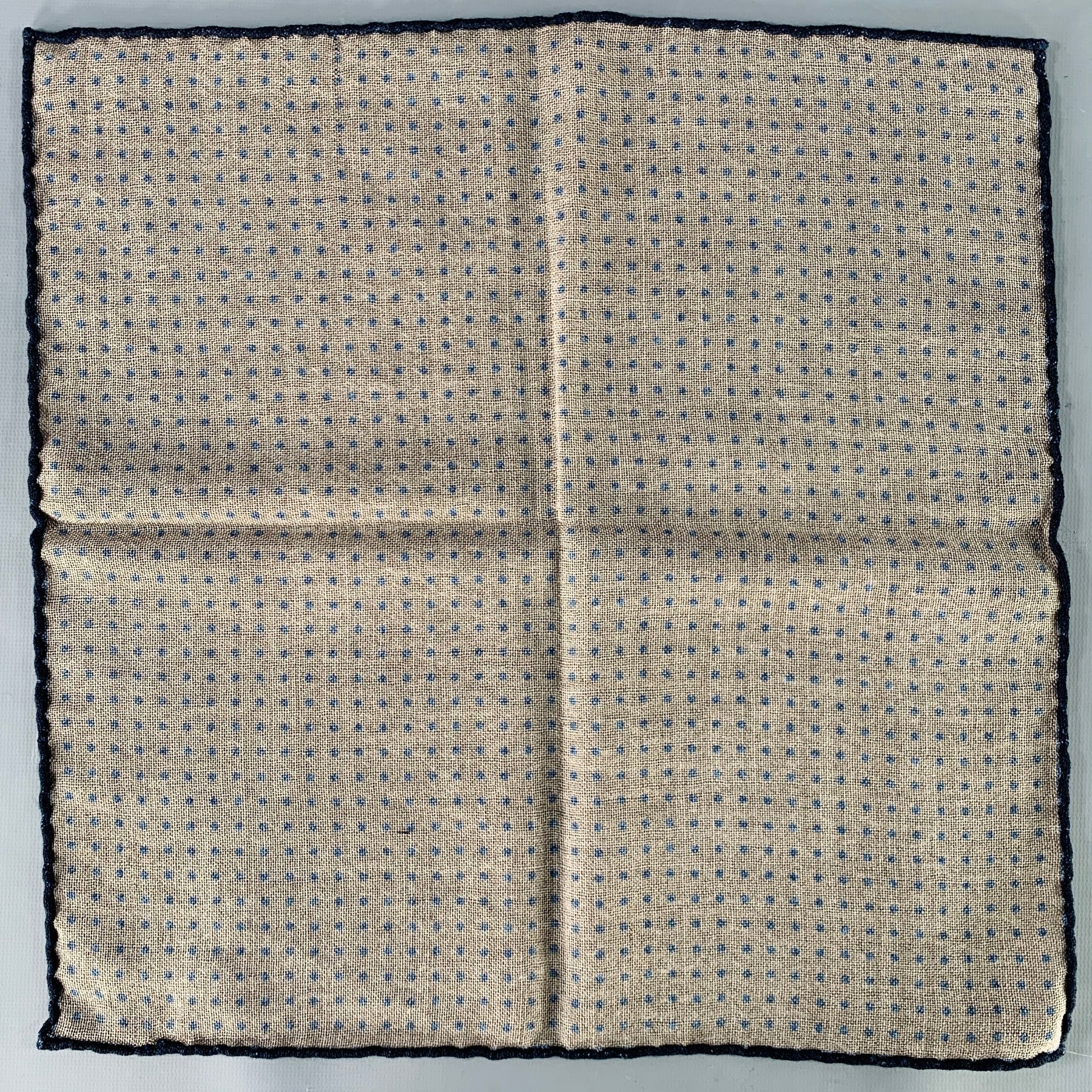 BRUNELLO CUCINELLI pocket square in a brown and navy woven fabric featuring a polka dot pattern and hand rolled edges.
