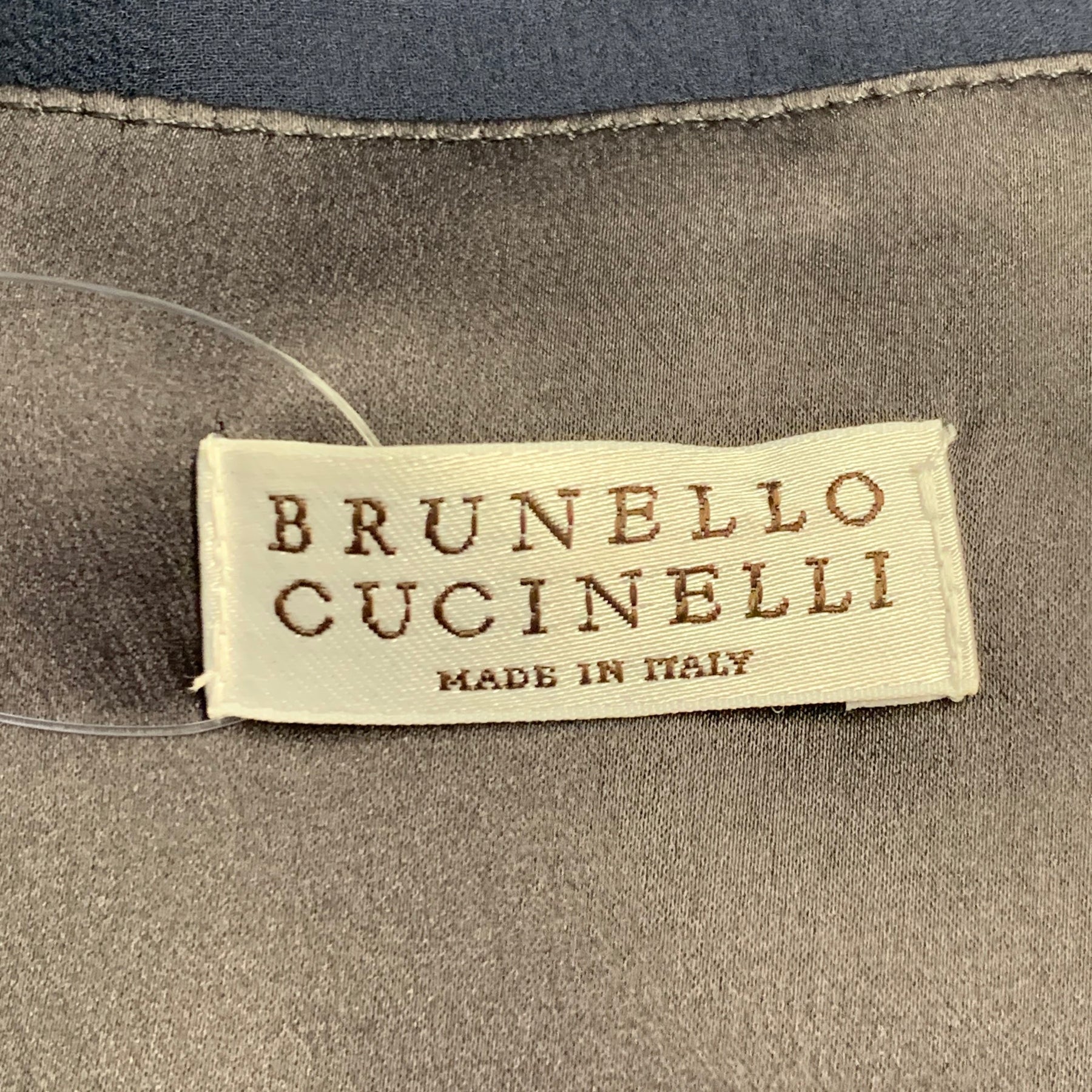 BRUNELLO CUCINELLI Size S Navy Black Chiffon Two Tone Monili Beading V-Neck Blouse