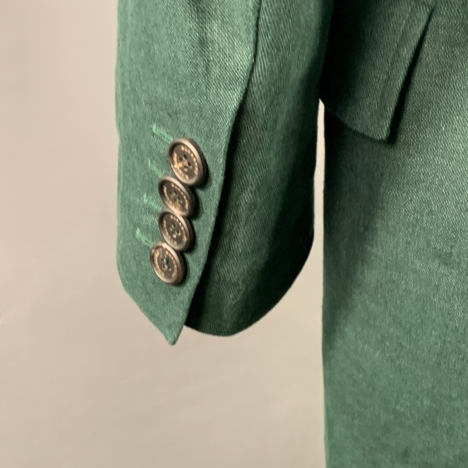 BURBERRY PRORSUM SS15 Size 44 Green Linen Double Breasted Coat