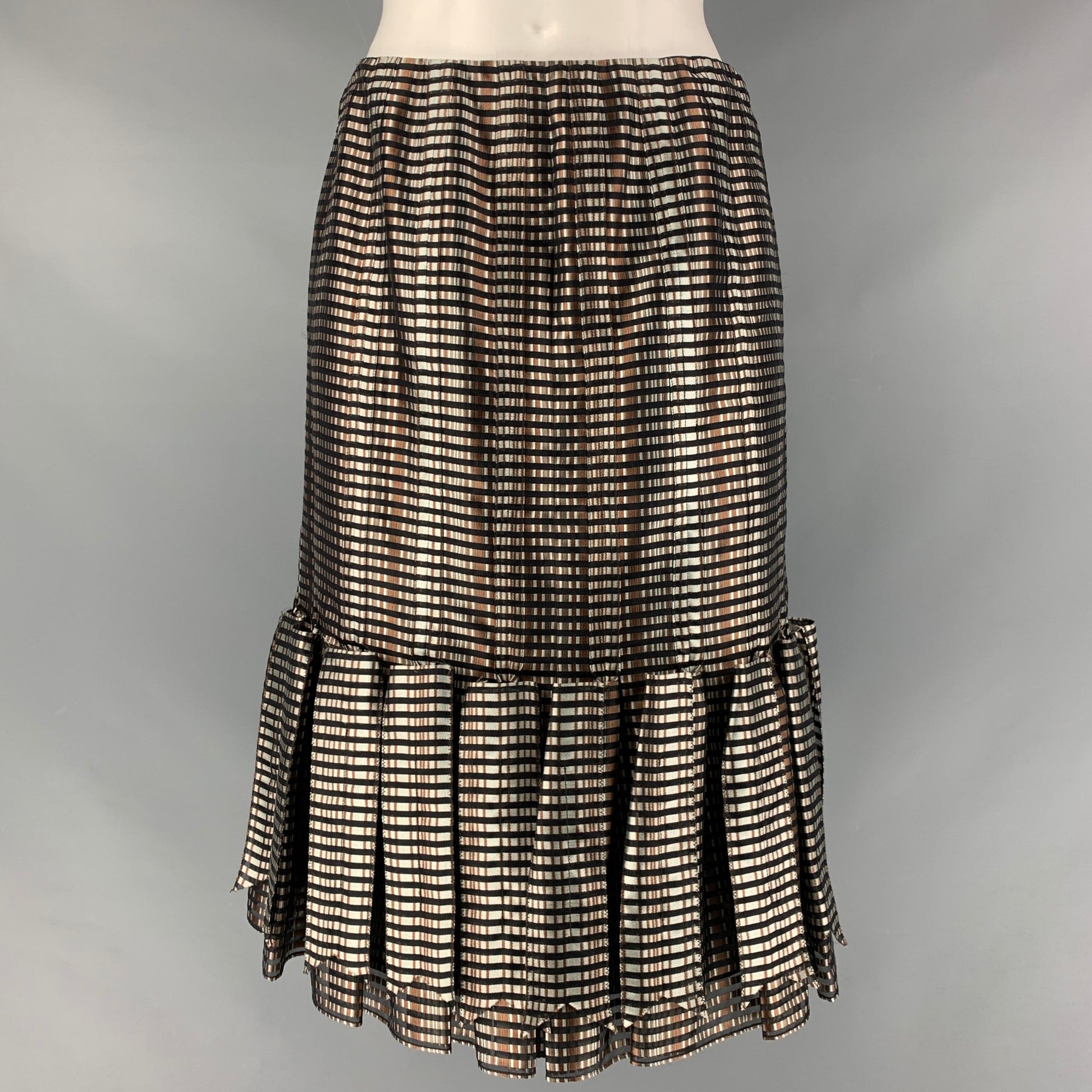 CAROLINA HERRERA Size 4 Grey, Black & Brown Silk Checkered Pleated Skirt
